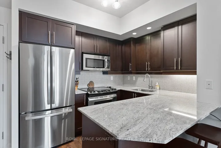 +"PublicRemarks": "Spectacular split 2-bedroom + den, 2-bath end-unit with a private gated terrace, 2 parking spots & 2 storage lockers! Spanning over 1,077 sq ft, this suite features soaring 9-ft ceilings and a mix of glass block & floor-to-ceiling windows that flood the space in natural light - enjoy endless sunrises through an east-facing exposure! The sleek U-shaped kitchen is both stylish & functional, featuring granite countertops, a breakfast bar, full-size stainless steel appliances, a subway micro-tile backsplash & abundant cabinetry. The expansive open-concept living & dining area is framed by east & south-facing windows, providing an ideal setting for entertaining & everyday living, with seamless access to the courtyard - a clever extension of your private terrace. The spacious primary suite offers glass block windows, a walk-in closet with built-ins & a spa-inspired 4-piece ensuite with a glass block shower & separate soaker tub. The second bedroom features floor-to-ceiling windows, a double closet & a beautifully appointed 3-piece bath. Both bedrooms & principal living areas enjoy peaceful courtyard views. The thoughtfully separated den with a custom wall-to-wall storage system adds exceptional versatility - perfect as a home office, yoga studio, additional lounging/entertainment space, or easily converted into a third bedroom. BONUS: This suite is ideally positioned at the end of the hall, far away from the elevators, with only one neighbouring unit for added privacy and quiet. Additional highlights include: Two parking spaces (tandem, open-ended) conveniently located near the elevators & two storage lockers - one just steps from the unit & the other in the underground garage. World-Class Amenities: 24-Hour Concierge, Gym, Indoor Pool, Jacuzzi's, Saunas, Movie Theatre, Bowling Alley, Virtual Golf Room, Newly Renovated Party Room, Games Room with Ping Pong, Foosball & More, Billiard's Room, Guest Suites, Visitor Parking, Courtyard & Rooftop Deck Lounge with BBQ's"