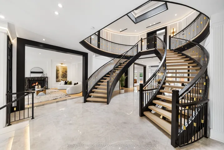 +"PublicRemarks": "This exceptional newly built luxury residence offers nearly 10,000 sq ft of beautifully finished living space on a prestigious south-facing 68' x 150' lot, delivering remarkable scale, craftsmanship, and architectural elegance. Featuring 5+1 oversized bedrooms, each with its own private ensuite and walk-in closet, the home is designed for ultimate comfort, privacy, and modern family living. Grand ceiling heights create an extraordinary sense of space with 10-ft ceilings on the main level, 9-ft ceilings on the second floor, and a breathtaking 14-ft grand foyer, while the 11-ft lower level provides a bright and expansive walk-up basement ideal for entertaining. The striking natural limestone façade is framed by six custom columns inspired by the U.S. Capitol, with hand-crafted capitals that create a distinguished presence rarely seen in Toronto. The home's symmetrical design and incorporation of the Golden Ratio create a sense of balance, harmony, and timeless elegance throughout. Designed for exceptional indoor-outdoor living, the spectacular backyard retreat features a heated saltwater concrete pool, pergola, outdoor BBQ area, and professionally landscaped grounds. Additional exterior highlights include a heated driveway, extensive stone walkways, and a rare 3-car garage. Inside, the home is fully equipped with a Control4 smart lighting system, in-floor heating (where applicable), and a sophisticated whole-home audio system with surround sound in the family room, lower level entertainment space, and theatre, plus wiring for backyard audio. Additional luxury amenities include four fireplaces, a jacuzzi, dry and steam sauna, and a stunning primary suite retreat. Conveniently located just minutes from York Mills Subway Station, Highway 401, and within close proximity to Toronto's top private schools, shops, and amenities. A rare offering in one of the city's most prestigious communities."