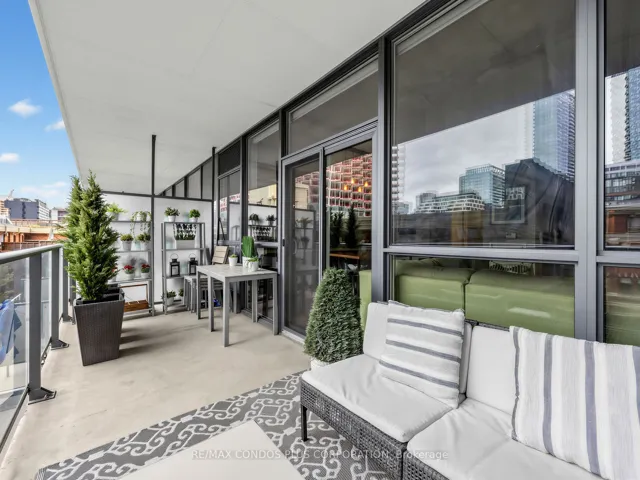 +"PublicRemarks": "Beautiful and bright south facing one bedroom/one bathroom corner unit at Victory Condominiums a boutique 12 story loft style building nestled in vibrant King West location downtown Toronto. Meticulously maintained by the original owner and great sense of space with no cumbersome structural pillars in the unit to obstruct flow and diminish functionality. Floor to ceiling windows, modern kitchen with built in appliances, granite counters, wood flooring and concrete high ceilings. Bedroom has large closet and private rustic wooden loft style sliding barn door. Step out onto the huge 160 square foot sun drenched private covered balcony facing the inner courtyard and set back from the street to enjoy morning coffee, intimate dinners or cocktails with friends. Enter the private entrance and 24/7 concierge greets your guests in stunning modern lobby. Enjoy the luxury amenities like gym, party room and guest suite that add to the appeal of this property. Step out the front door to award winning renowned restaurants and shopping of King & Queen West and 24 hour transit. Entertainment & Financial districts and The Well all in close proximity. Be part of the excitement as TIFF takes over King West early September. Easy access to Martin Goodman Trail, Billy Bishop Island Airport, Gardiner and Lake Shore highways. *** Investors can purchase fully furnished at additional package price or first time buyer/end user can purchase any furnishings separately to maintain the beautiful and functional space created by the current owner."
