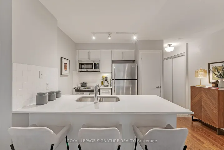 +"PublicRemarks": "Live in the heart of Queen West without the noise. This unique 1-bedroom suite overlooks a serene courtyard and boasts high-end custom finishes. This unit is right in the heart of Queen West, just a short walk to Ossington & Trinity Bellwoods, and steps away from Grocery stores & cafes. All while overlooking a quiet courtyard that feels separated from the city. *The Location:- 99 Walk Score.- 5 min to Ossington Ave. Access to all the coolest bars & restaurants in Toronto. - 10 min to Trinity Bellwoods Park.- Easy access to 501 Queen Streetcar. **The Unit:- Open-concept living with built-in cord-free TV mounting setup. - In unit washer/dryer- Full-sized stainless steel appliances (including dishwasher).- Small mudroom/entryway (unheard of in Toronto condos) - Large picture windows with custom window treatments for added privacy- Private balcony with the unique character of exposed brick. ***The Building: Live in the highly sought after Bohemian Embassy, with 24/7 security desk, right in the heart of Queen West and with renovated amenities - Reno'd Fitness Centre.- Rooftop Terrace with City Views.- Media/Party Room & Guest Suites all updated this month"