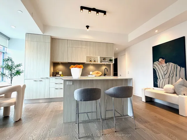 +"PublicRemarks": "KINGLY --- Boutique Living in the heart of King West! Rare opportunity to own in one of the King West's most sought-after Prestigious Boutique Residences by Allied Properties REIT. Featuring Signature Red Brick façade and iconic New York So Ho-inspired loft windows, this exclusive 132-unit building blends character with modern design. Stunning Unobstructed CN Tower and downtown skyline views! This beautifully upgraded modern neutral palleted unit has smart split 2 Bed / 2 Bath , offers a highly functional open-concept layout with premium finishes throughout. Acoustically engineered demising walls ensure exceptional privacy and quiet living. Bright and spacious dining area features floor-to-ceiling, wall-to-wall windows, creating a bright and airy space ideal for both everyday living and entertaining. Contemporary kitchen equipped with full-size appliances, thoughtfully designed for both style and function. Upgrades include: Kitchen island with deep pull-out drawers ; Pot lights in dining area, entry, and living room ; Neutral modern window shades throughout; Bathtub glass panel with stain-resistant treatment. Enjoy premium amenities including 24-hour concierge, very well-equipped Fitness Centre, and a quiet, well managed community-oriented building with predominantly young professional residents. Unbeatable Location Surrounded by Toronto's Top Dining, Cafes, Lounges, Bars and Vibrant nightlife. Steps to St. Andrew's Playground/ lease free Dog Park; Waterworks Food Hall (dog friendly) and The Well. Minutes to Loblaws, Home Sense, Dollar stores, Farm Boy, Queen West shopping, parks, and the waterfront. A True Walker's Paradise -- Leave the car behind and enjoy the very Best of King West Living."