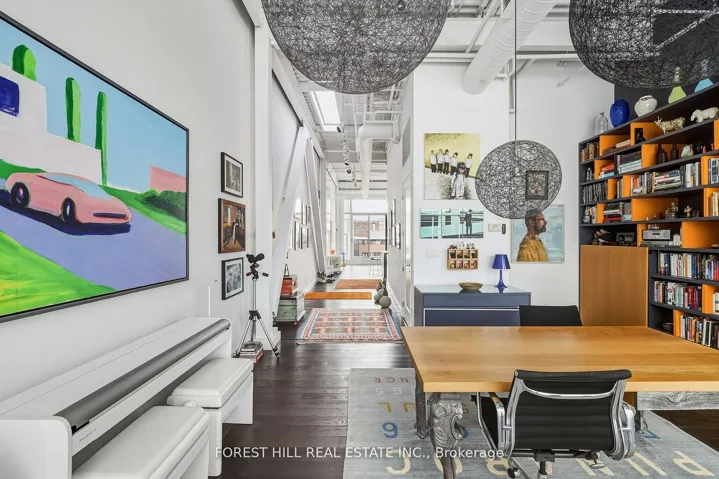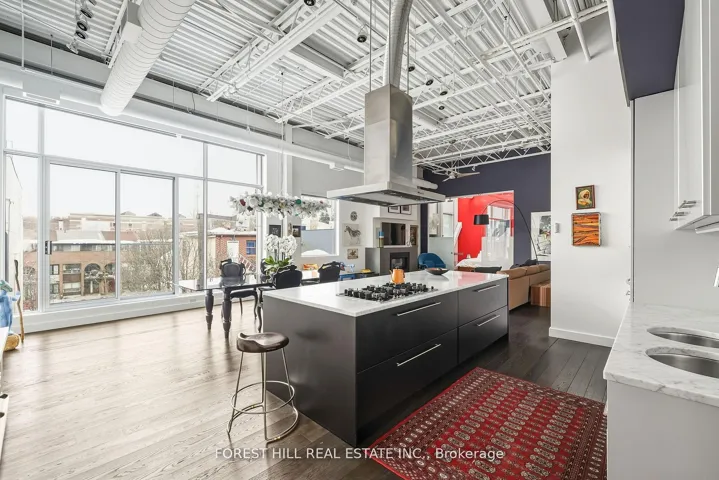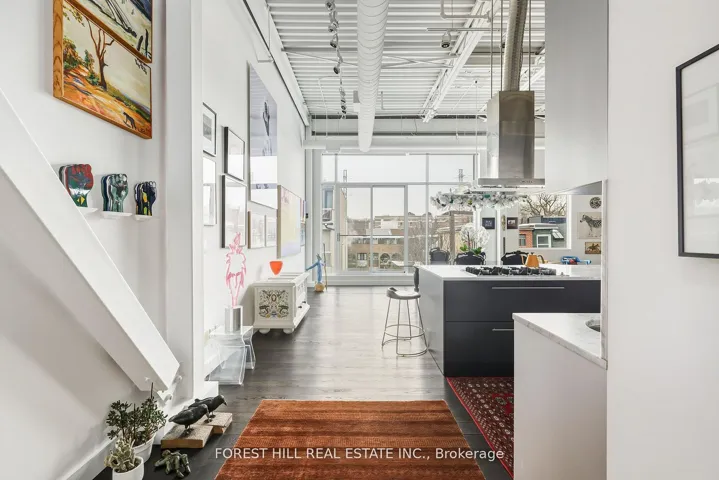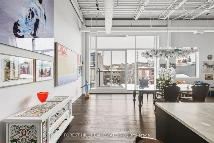 +"PublicRemarks": "Come home to one of the city's most stunning architectural masterpieces. Set within an intimate boutique building of just seven exclusive residences, this design-driven loft offers discretion and privacy just steps from Toronto's most iconic neighborhoods, including The Annex, Yorkville, and Casa Loma.Positioned on the top floor and defined by dramatic 15-foot ceilings, this showpiece lives more like a private home than a condominium. The extraordinary space is anchored by a sleek gas fireplace and wrapped in floor-to-ceiling windows that flood the interior with natural light. Clean lines, voluminous proportions, and an effortless open-concept layout create an atmosphere that is both refined and inviting.The Schiffini chef's kitchen is contemporary and functional, featuring an oversized island with extensive integrated storage and a full suite of top-of-the-line Miele appliances. Designed for both elevated entertaining and everyday living, it seamlessly anchors the main living area.Two generously sized bedrooms each feature a private ensuite, providing rare symmetry and privacy. The primary suite is a true retreat, complete with a large walk-in closet and a spa-caliber bath featuring a deep soaker tub, steam shower, and floor-to-ceiling tile detailing. A beautifully appointed powder room adds convenience for guests.Outdoor living includes a private balcony plus two Juliet balconies, enhancing the indoor-outdoor flow and reinforcing the loft's airy, architectural presence. Professionally curated throughout, the residence perfectly blends authentic industrial character with elevated modern finishes. Two parking spaces and a large private locker complete this exceptional offering. For those with refined taste seeking a truly unique space to live and entertain, this property is a dream come true."
