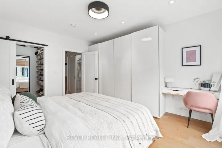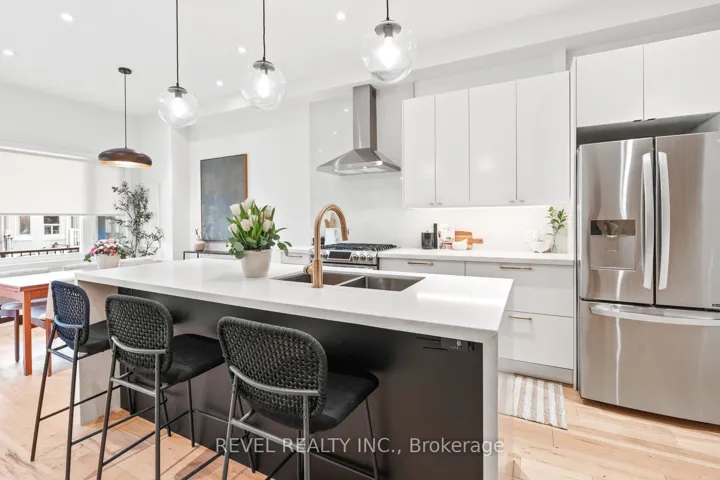 +"PublicRemarks": "Designed for effortless living and finished with intention throughout, this is the kind of home you move into and immediately feel settled. Rare end-of-row home near Trinity Bellwoods, feels like a semi with added privacy, extra light, and enhanced livability, all in the heart of one of Toronto's most vibrant neighbourhoods. Completely rebuilt on the main and upper levels in 2018, this home blends thoughtful design with quality craftsmanship. The bright, open main floor is built for modern living, custom kitchen with quartz countertops, large island, stainless steel appliances, including a fridge with built-in ice maker and water system, gas stove, and extensive custom millwork with integrated storage and bar setup. The layout flows seamlessly into the dining and living areas with updated flooring, lighting, and smart storage throughout. Walk out to your private back deck for effortless indoor-outdoor living, plus a main floor powder room.Upstairs, two well-proportioned bedrooms include a spacious primary with walk-in closet and second-floor laundry. The spa-inspired bathroom features heated floors, soaker tub, rain shower, and a sleek Toto wall-hung toilet.The lower level offers a self-contained suite with separate rear entrance, updated flooring, insulation, and waterproofing, ideal for flexible use or supplemental income.Outside, enjoy a low-maintenance backyard with artificial turf, drainage system, and cedar fencing, plus a detached garage with parking for approximately 1.5 vehicles and ample storage. An electrical conduit is in place to run power for a future EV charger.Built with foresight, the home was designed to potentially accommodate a future third-storey addition and allow for easy basement reconfiguration, unlocking long-term value.Steps to Trinity Bellwoods, top restaurants, cafes, shops, transit, and the core, this is city living at its best."