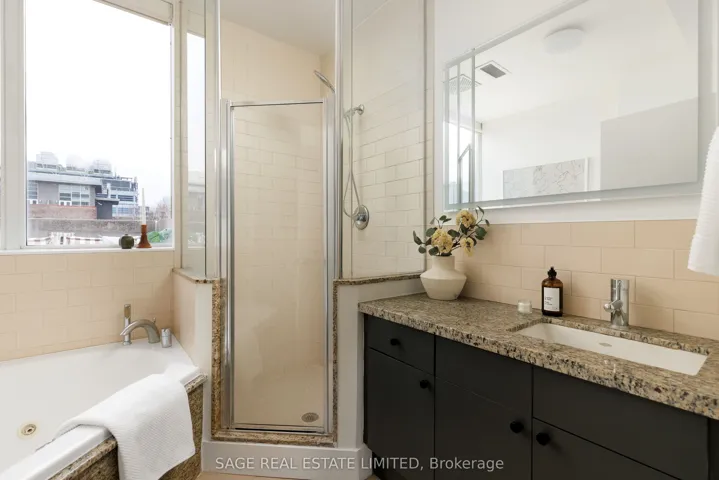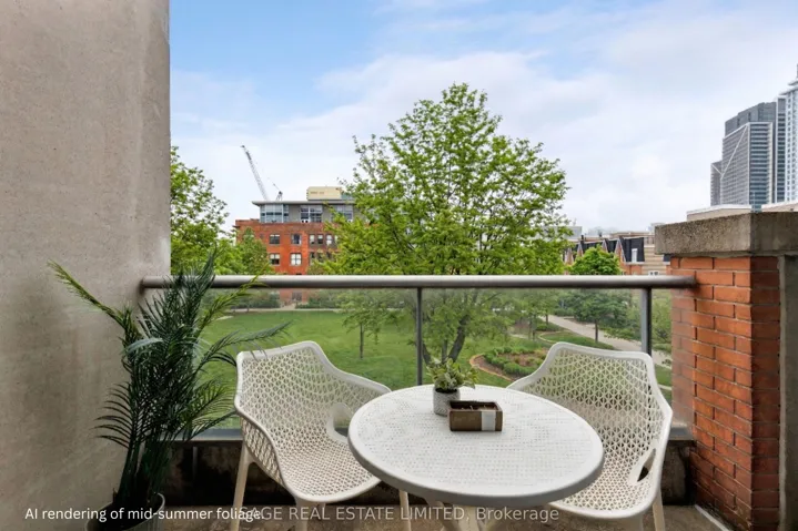 +"PublicRemarks": "Tucked quietly above King St West, that good-part stretch where the city hums but never overwhelms, sits this rarely offered two-storey residence. Perched at tree level, it meets the birds eye-to-eye over Massey Harris Park. Not a townhouse. Not a typical condo. Something far more rare. Meet unit 332, on the market for the first time in 17 years. The scale hits you immediately. Generous, intentional. The layout is open, but not predictable. A dramatic living room is anchored by a striking East-facing view over the park's treetops, with a footprint designed for the kind of sofa you actually want to come home to. Built-ins add function and polish while pot lights on dimmers shift the mood from bright mornings to slower evenings. Step out to the balcony or leave it open just to hear the buzz of the city. A large bedroom sits just off the living space with custom barn doors that open for flow or close for privacy. The kitchen is purposeful and spacious (no narrow galley feel here) with a full suite of new LG appliances, Kohler country sink, and wine fridge. It's the kind of kitchen that actually makes you want to cook. A separate den adapts to whatever your life calls for: Dining room? Cozy TV nook? Work-from-home zone? You decide. Upstairs, the primary suite feels like its own retreat. Big enough for a California King and everything that goes with it, it holds the walk-in closet, a 4-piece bath, and a jacuzzi bathtub with a view. Then, what sets this home apart: two walkouts open to nearly 300 square feet of private terrace where the view expands beyond the park to a full skyline anchored by the CN Tower. Atop the building's podium, a solid concrete parapet frames the terrace to feel like a fenced backyard in the sky. Gas line, hose bib, multiple drains, space to garden, host, or simply be. With light moving from East to South, everything here has room to grow. Even you."