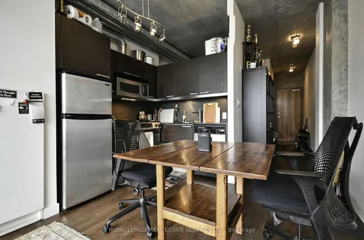 +"PublicRemarks": "Boutique loft living at One Six Nine Lofts in the heart of Toronto's Entertainment District. This thoughtfully designed suite blends exposed concrete, floor-to-ceiling windows and clean modern finishes, creating a calm urban retreat above the city.Clean lines and an open-concept layout allow natural light to move freely throughout the interior. The sleek kitchen integrates seamlessly with the living space and features integrated stainless steel appliances and contemporary finishes, creating an effortless environment for both everyday living and entertaining. Carefully considered proportions and understated materials contribute to the suite's refined loft aesthetic, while a private balcony offers a quiet outdoor perch to unwind and catch the evening sunset.The suite also includes in-suite laundry and an owned locker for additional storage, while the building offers secure key-fob access for peace of mind.One Six Nine Lofts is an intimate mid-rise known for its boutique scale and design-forward atmosphere. With only a limited number of residences, opportunities to own here are rare.Situated just steps from Queen West, the TIFF Lightbox, theatres, cafés and some of the city's best restaurants, the location places Toronto's cultural and culinary life at your doorstep while maintaining a sense of retreat above the street."