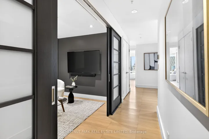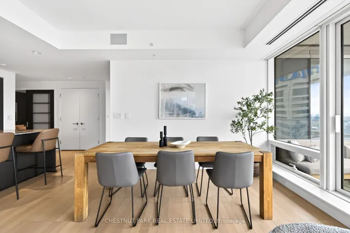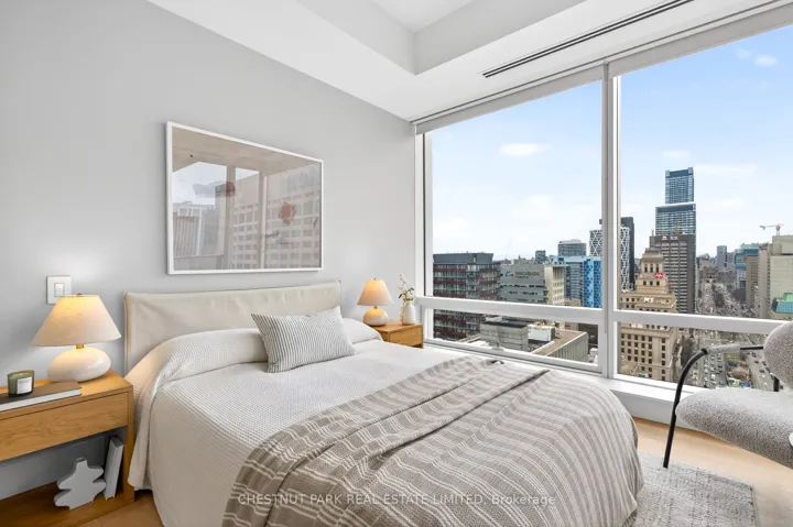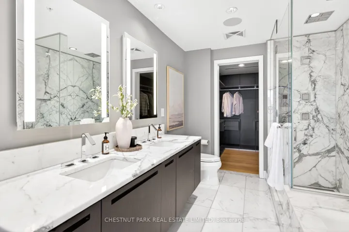 +"PublicRemarks": "Situated above the iconic Shangri-La Toronto, this exceptional corner suite offers nearly 1,800 square feet of refined living with two bedrooms, a private den, and breathtaking north-facing views. Floor-to-ceiling wraparound windows frame unobstructed views up University Avenue, over Osgoode Hall, and all the way to Queen's Park. The open-concept living and dining areas connect seamlessly to the Boffi-designed kitchen, complete with Miele and Sub-Zero appliances, excellent storage and ample room to entertain.The primary bedroom features stunning city views, a large walk-in closet, and a five-piece marble-clad ensuite with a deep soaker tub, Kohler DTV shower, and dual vanities. The second bedroom offers double closets and its own private three-piece ensuite. A separate den provides flexibility for a home office, media room, or potential third bedroom. The suite also features a large balcony taking in the city views. Included with the suite is one parking with EV charging and a large locker. Residents enjoy access to Shangri-La's exceptional amenities, including 24-hour concierge, valet parking (pay per use), a 24-hour fitness centre, indoor pool, hot tub, sauna, steam rooms, Bosk Restaurant, and The Lobby Lounge. Moments from the Financial District, King West, and Toronto's best dining and entertainment."