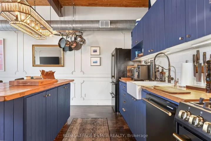 +"PublicRemarks": "Welcome to a showstopping, one-of-a-kind hard loft set within the iconic Stinson School Lofts. This historic boutique conversion blends timeless Victorian architecture with refined, modern design in a way that's truly unmatched. With 1300 sq ft of interior living space and an additional 864 sq ft private terrace, this two-level loft is a rare find. Soaring 17-foot ceilings and two-storey Reynaers windows flood the home with natural light. Original brick, exposed PSL beams, and industrial steel hardware add authentic character, while curated finishes bring elevated style. The chefs kitchen features maple cabinetry, premium European appliances, and a dramatic denim granite waterfall island. Entertain in the open-concept great room or step outside to your custom Japanese-style wood patio with planters and treetop views - your own private outdoor retreat. Upstairs, the primary suite is a peaceful haven with custom closets, a feature PSL post, and a spa-worthy ensuite wrapped in marble. A second bedroom or flexible office/guest space offers built-ins and warm wool carpeting. Every inch has been considered - from the bespoke glass staircase to the custom lighting throughout. Set in a boutique building rich with history, and located near Hamilton's downtown core, Wentworth Steps, and the Escarpment trails, this loft offers urban edge with soul. A true architectural gem - rarely offered and impossible to replicate."