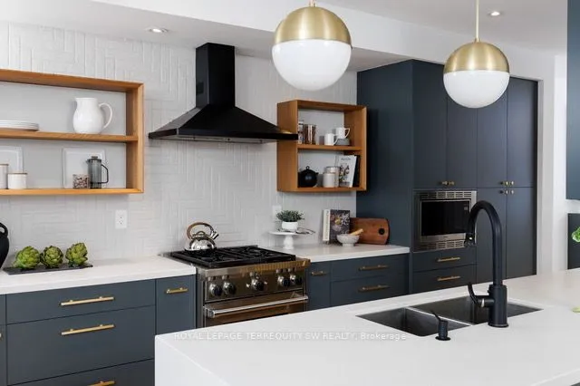 +"PublicRemarks": "Stunning, renovated 4+1 bedroom home located on one of the most sought-after streets in Thornhill Woods, tucked away on a quiet court. The main level features 9-foot ceilings, hardwood flooring, smooth ceilings, pot lights, and a spacious main-floor laundry room. The beautifully updated eat-in kitchen offers a large island, abundant cabinetry, and sleek stainless steel appliances.The inviting family room is highlighted by a stone feature wall with a built-in gas fireplace and integrated speakers, creating a warm and comfortable space for everyday living and entertaining. Upstairs, you'll find four generously sized bedrooms, including a luxurious primary suite with a walk-in closet featuring custom organizers and a fully renovated 5-piece ensuite bathroom. The fully finished basement adds valuable living space with a bedroom or office behind glass French doors, along with a large recreation area. Outside, enjoy a beautifully backyard with an interlock patio-ideal for outdoor gatherings. Perfectly situated beside a scenic park, ravine trails, and public transit, this home blends comfort, modern style, and everyday convenience."