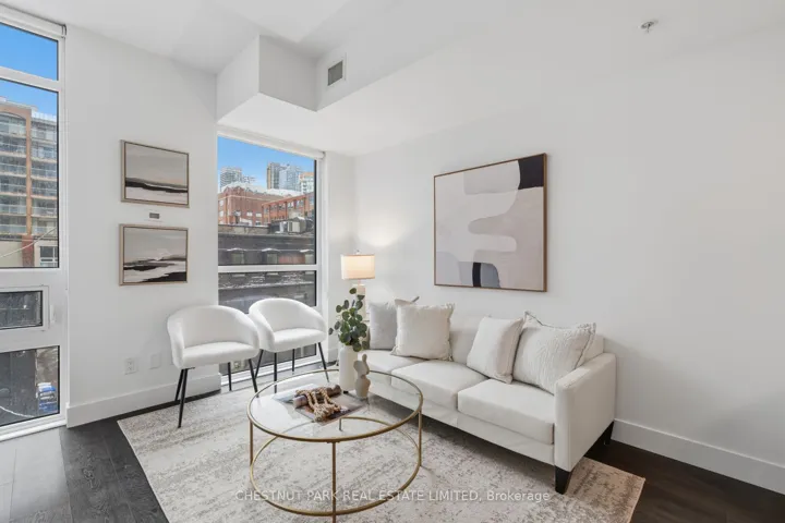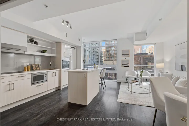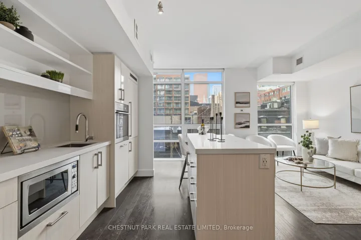 +"PublicRemarks": "Welcome to this spacious and intelligently designed two-bedroom plus den suite in the heart of King East-Toronto's renowned furniture and design district. Offering approximately 950 sq. ft. of interior living space, this residence blends modern finishes with a highly functional layout, ideal for end-users and investors alike. Smart, Functional Layout The well-appointed floor plan features a bright open-concept living and dining area, perfect for entertaining or relaxing. The contemporary kitchen flows seamlessly into the main living space and is anchored by a functional island-ideal for casual dining and everyday use. Two generously sized bedrooms are thoughtfully positioned for privacy. The primary bedroom offers a comfortable retreat, while the second bedroom features sleek frosted sliding glass doors, allowing flexibility without compromising light. A separate den provides valuable additional space-perfect for a home office, nursery, or reading nook-making this layout especially versatile for modern urban living."