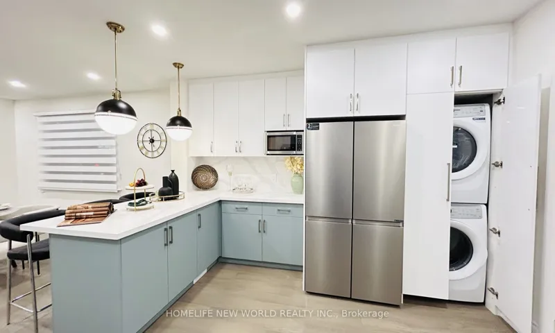 +"PublicRemarks": "Beautifully recently renovated semi-detached home in the heart of Seaton Village with over $100k in upgrades completed in late 2025, offering a functional layout and modern finishes throughout. Bright open-concept living space with brand-new flooring, new pot lights, and fresh paint. The main level features a large new modern kitchen with a big island, custom cabinetry, quartz countertops & backsplash, and new stainless steel appliances. A dedicated laundry area with washer and dryer seamlessly integrated into custom cabinetry for a sleek, refined look. The spacious primary bedroom with a bay window provides abundant natural light. The second-floor bathroom has been thoughtfully renovated with modern finishes. All-new zebra blinds installed throughout. The fully finished basement includes a two-bedroom suite with a brand-new kitchen & laundry room & bathroom, new vinyl flooring, a new custom door, a separate entrance, increased ceiling height, and above-grade windows allowing for natural light, ideal for extended family or rental income. The rear yard, accessible through the new garage door, offers flexible use as a large storage area or parking for one small compact sedan. A separate side entrance located next to the garage door adds convenience. Newly installed air conditioner. Easy access to all amenities, including shops, schools, parks, and TTC. Close proximity to both subway lines, George Brown College, and U of T. Don't miss it!"