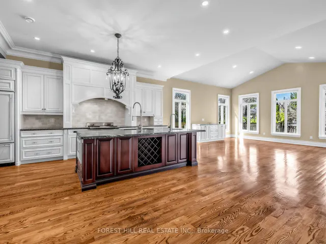 +"PublicRemarks": "Located in the prestigious St. Andrew-Windfields neighbourhood, this elegant custom home offers over 6,000 sq ft of above-ground living space plus a fully finished basement. Situated on a premium lot on a quiet cul-de-sac, the home features a spacious layout ideal for families.Highlights include soaring ceilings, marble finishes, multiple fireplaces, a formal dining room, and a wood-panelled library. The gourmet kitchen is equipped with high-end appliances, a large island, and a butler's pantry. The bright family room with cathedral ceiling and French doors opens to a beautifully landscaped backyard.The upper level offers a luxurious primary suite with spa-like ensuite, along with four additional bedrooms. A 4-car tandem garage provides ample parking and storage.Close to top schools, Granite Club, Rosedale Golf Club, parks, and fine dining.A rare opportunity to lease a luxury home in one of Toronto's most sought-after communities."