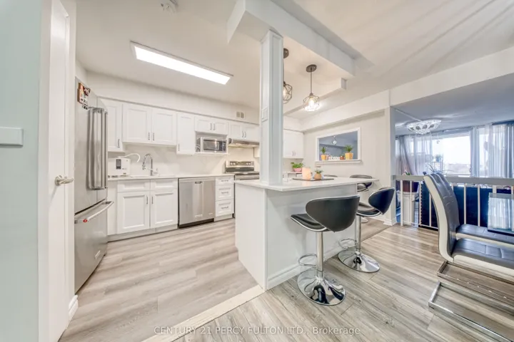 +"PublicRemarks": "BRIGHT and SPACIOUS CORNER UNIT with UNOBSTRUCTED VIEWS. This 3-bedroom, 2-bathroom corner suite offers a functional open-concept layout. The interior has been modernised throughout, featuring a custom-designed open-plan kitchen with a functional kitchen island, high-end appliances, quartz countertops and backsplash, soft-closing cabinets/drawers, and contemporary finishes. The primary bedroom includes a large walk-in closet and a private 2-piece ensuite. A large balcony provides panoramic, unobstructed views of the surrounding area. The building is absolutely beautiful, well-maintained, and prioritises resident safety with an extensive network of security cameras. Residents have access to a range of amenities, including an outdoor swimming pool, a fully equipped gym, a sauna, and secure bicycle storage. Visitor parking spaces are available on-site. Situated in a highly convenient location with immediate access to the DVP, Highway 401, and Highway 404. The property is steps away from schools, bus stops, local parks, restaurants, and shopping centres. Maintenance fees are comprehensive, covering all utilities (Hydro, Heat, Water), Building Insurance, and Common Elements."