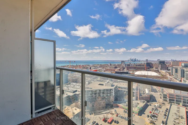 +"PublicRemarks": "A rare offering in Liberty Village-this is the one buyers wait for.Units of this size rarely come to market-this is the first in over a year. Perched on the 28th floor with over 1,000 sq ft and not one, but two private balconies, this suite delivers panoramic city views from every angle and true indoor-outdoor living.Step inside to a freshly painted, sun-filled true 2-bedroom + oversized den, 2-bath layout designed for both comfort and functionality. This is not a token den-it's a fully usable, large separate space, perfect for a home office, guest area, or even a third bedroom setup.The open-concept living and dining space flows seamlessly to one of the balconies, creating an elevated lifestyle rarely found in condo living. The modern kitchen features stainless steel appliances, stone countertops, and ample cabinetry-ideal for both everyday living and entertaining.The primary bedroom is a true retreat, complete with its own private balcony, large closet, and ensuite bath. A well-sized second bedroom and second full bathroom round out a layout that truly stands apart from typical Liberty Village units.1 parking and 1 locker included-adding real convenience and value.Located in the heart of Liberty Village, you're steps to top restaurants, cafes, fitness studios, parks, and transit, with access to premium building amenities including a gym, indoor pool, concierge, and more.If you've been waiting for a large, functional condo with real outdoor space and a usable den in Liberty Village-this is it"
