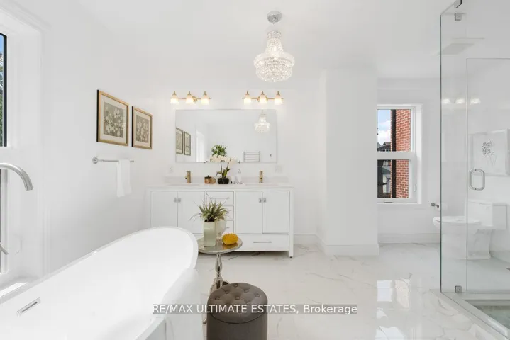 +"PublicRemarks": "Located in the heart of downtown Toronto, this luxury estate is perfectly positioned across from Alexandra Park and steps from the University of Toronto, OCAD University, Toronto Western Hospital and the Financial District, in the Trinity Bellwood neighbourhood. Wake up every morning to the scenery of a beautiful park across the street, with a view of the CN Tower peaking above the trees. Offering unmatched access to downtown living with privacy and exclusivity, this home is a true masterpiece. COMPLETELY UPDATED STRUCTURE, PLUMBING, ELECTRICAL AND HVAC TO APPROVED BUILDING CODE STANDARDS, this house is meticulously renovated (over $500K) with no expense spared. The open-concept main floor features crystal chandeliers, soaring coffered ceilings, and gleaming hardwood floors. The chef's kitchen, equipped with premium smart appliances, features full height custom cabinetry, luxurious Caesarstone granite countertops, and a spacious center island with a dramatic waterfall edge and bistro-style seating. Upstairs, the primary suite is a serene sanctuary with a custom walk-in closet, and a personal luxurious oasis spa retreat main bathroom, complete with rainfall shower head, large soaker tub, heated floors, and towel warmer. The finished basement offers flexible space, including a private in-law suite with its own entrance, ideal for multigenerational living or rental income. Outside, enjoy a private garden oasis and a two-car garage with app-controlled automatic doors and EV charger, permitted for future conversion into a coach house. This home also offers top-of-the-line security, with 24/7 camera coverage, reinforced steel doors, and state-of-the-art features for peace of mind. A rare opportunity to own a refined and luxurious home in one of Toronto's most desired neighbourhoods."