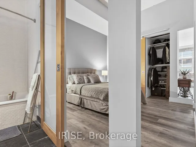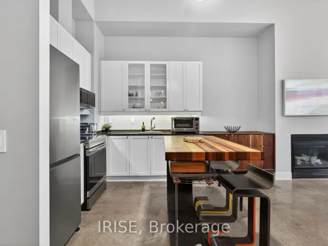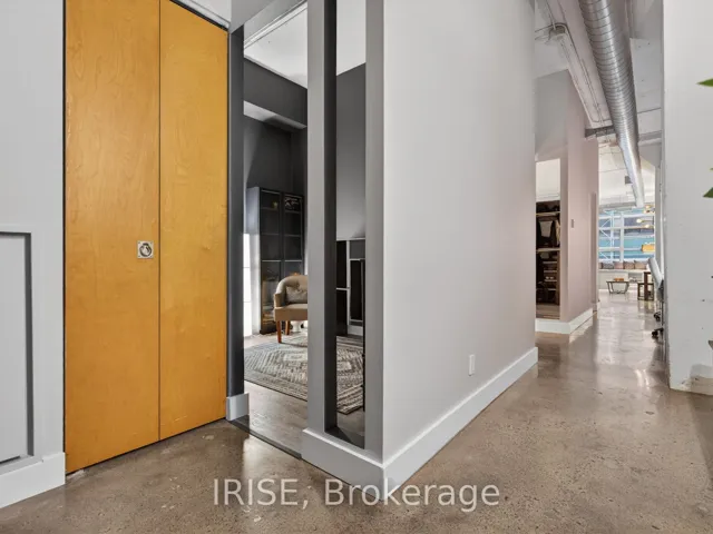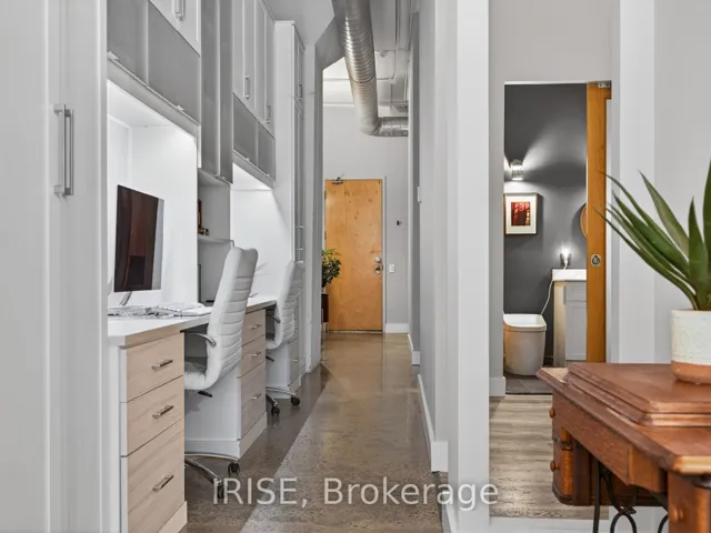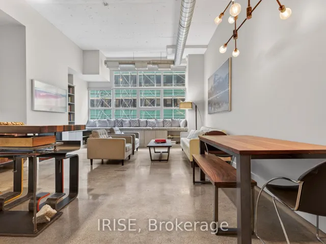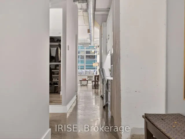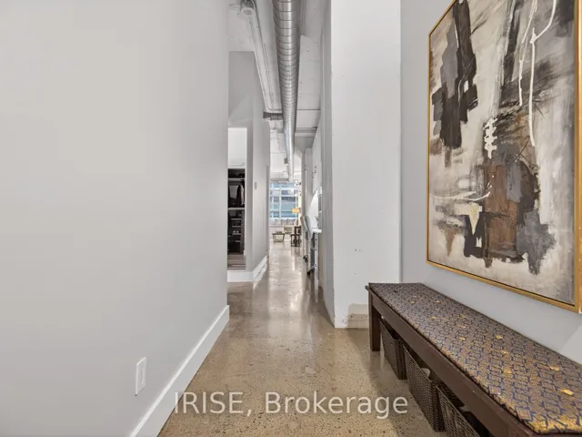 +"PublicRemarks": "Step into this stunning, one-of-a-kind suite in the iconic Merchandise lofts, offering almost 1100sqft of thoughtfully designed living space with soaring 12-ft ceilings and an unmistakable industrial-chic character. Featuring beautifully polished, high-quality concrete floors throughout, this unit blends modern upgrades with authentic heritage charm. The fully customized California Closets home office spans an entire wall, complete with built-in desks, benches, a custom island, and seating-perfect for both productivity and stylish entertaining. The renovated bathroom showcases sleek finishes, including a premium Toto electric smart toilet, elevating everyday comfort with a touch of luxury. Freshly painted, brand new Fridge and Stove and recently bought appliances. Also includes 1 EV parking space. Rich in history and character, the building offers a vibrant, welcoming community along with resort-style amenities designed for convenience and lifestyle. Enjoy unparalleled access to urban essentials with Metro grocery store right in the building, and ttc right at your doorstep. Don't miss it."