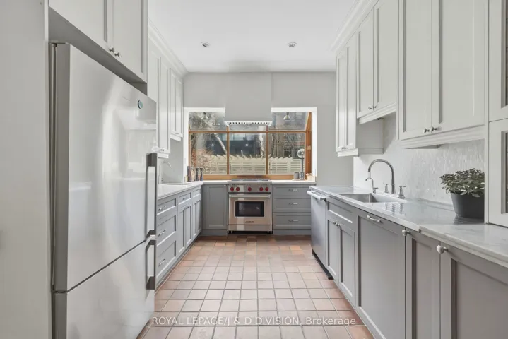 +"PublicRemarks": "Perfectly positioned on a quiet, tree-lined street in the heart of the Annex - just steps to Yorkville - this exceptional fully detached 4-bed, 3-bath home blends timeless charm with light-filled, inviting living spaces. The open-concept main floor is designed for both everyday comfort and elegant entertaining, anchored by an expansive living and dining area. The extended living room showcases soaring ceilings, graceful archways, and a front wall of surround windows and skylights that flood the home with natural light. The spacious dining area easily accommodates large gatherings and opens via French doors to a beautiful backyard - once featured in Toronto Life. The thoughtfully updated kitchen offers classic shaker cabinetry, a soft marble backsplash, premium stainless-steel appliances, and a sleek prep counter for effortless cleanup. A secondary bar sink and abundant cabinetry add functionality, while a wide bump-out window frames serene views of the backyard. Upstairs, the second level offers 3 versatile rooms and a stylish main bath which serves as an ensuite to the main. A stunning library/family room features custom built-ins, triple closets, and a bay window with integrated storage. Additional rooms provide flexibility for bedrooms, office space, or a nursery, each with hardwood floors, large windows, and custom storage. The chic bathroom includes a jacuzzi soaker tub, designer tile, and marble vanity. The third floor forms a private gabled retreat with 2 additional rooms currently configured as a bedroom and dressing room with 4 pc ensuite bath. Outside, the fully fenced backyard is a private urban oasis with a shaded pergola filled with summer Hydrangeas and a patio - perfect for summer entertaining. Located within the coveted Jesse Ketchum school district and moments to Yorkville shopping, the ROM, Manulife Centre, Eataly, Bloor Street, and subway access, this rare Annex offering delivers sophisticated city living with the tranquility of a secluded street."