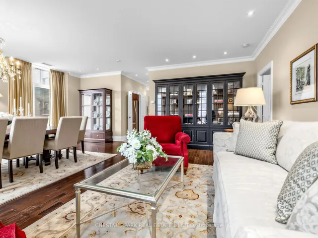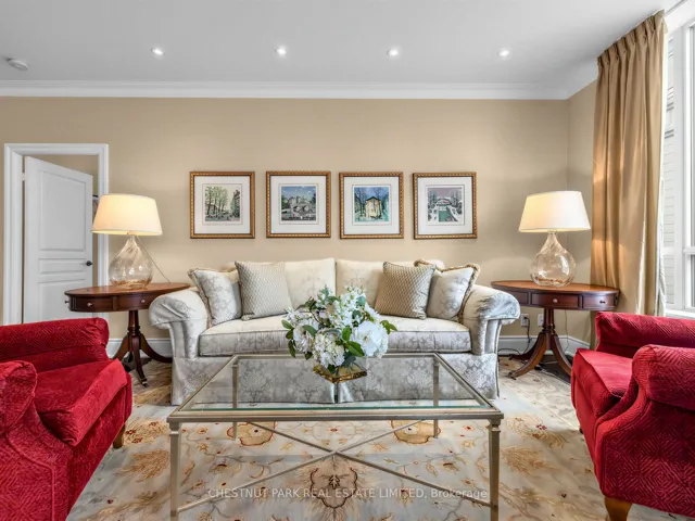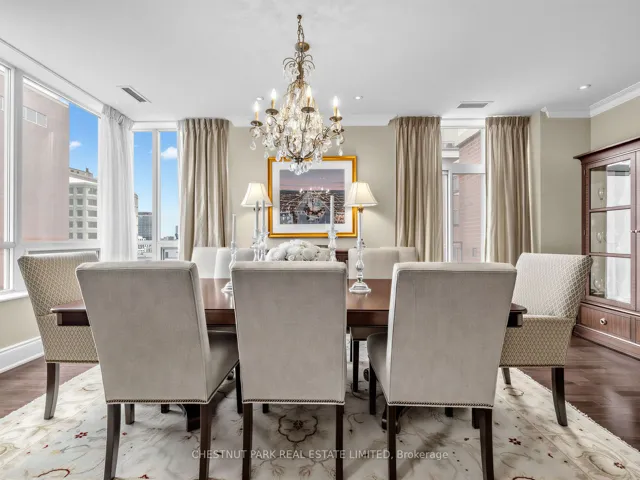 +"PublicRemarks": "Refined and elegant. this expansive 1,735 sq ft south-east corner residence is filled with natural light and designed for both comfortable living and sophisticated entertaining. Featuring two private balconies, 9 ft ceilings and engineered hardwood flooring throughout, the suite offers a gracious, well-proportioned layout.The updated eat-in kitchen is both functional and beautifully appointed, complete with granite countertops, matching backsplash, stainless steel appliances and abundant storage. A walkout to the balcony with a gas BBQ line makes outdoor dining effortless. The oversized formal living and dining rooms are anchored by a striking three-way gas fireplace, creating a warm and inviting atmosphere.A thoughtfully designed split-bedroom floor plan ensures privacy. The primary retreat is a true sanctuary, featuring a custom walk-in closet, an additional double closet and a spacious 6-piece marble ensuite with double vanities and excellent storage. A generous adjoining sitting area or home office offers flexibility and could easily be converted into a third bedroom. The second bedroom, currently used as a den, includes a double closet and ample space.Complete with the rare offering of two-car parking and two lockers, this exceptional condo is located just steps from the shops, dining and easy transit of Yonge & St Clair. Residents enjoy premium amenities including 24-hour concierge, visitor parking, a fitness centre, guest suite and party room."