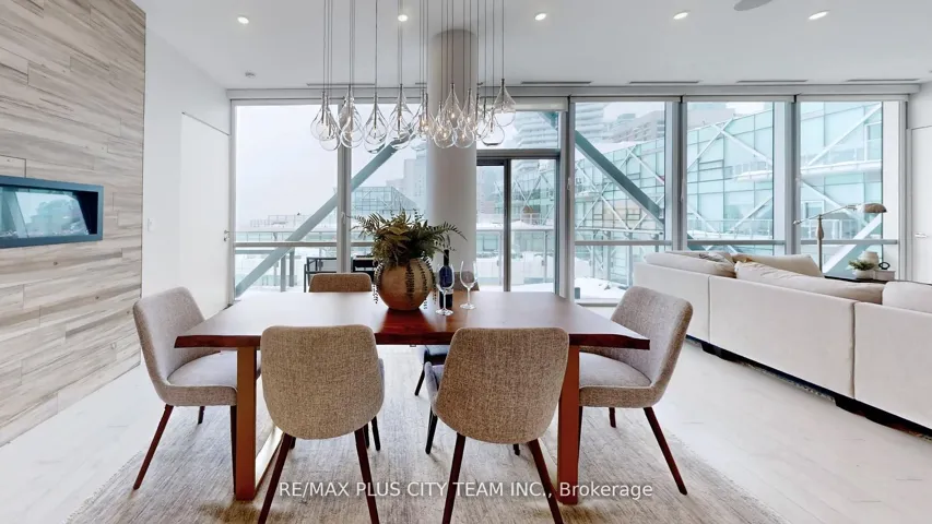 +"PublicRemarks": "Experience elevated waterfront living in this sub-penthouse residence at Pier 27, one of Toronto's most prestigious addresses. Boasting over 1,700 sq. ft. of refined living space, this 3-bedroom plus den, 3-bathroom suite combines luxury, comfort, and breathtaking unobstructed lake views through expansive 10-foot floor-to-ceiling windows that flood the home with natural light. The open-concept living and dining area features a custom-built-in fireplace and seamless flow for entertaining, while the chef-inspired kitchen showcases integrated Miele appliances, quartz countertops, and sleek cabinetry that balance modern design with everyday functionality. The primary suite offers a private retreat complete with a walk-in closet and spa-like ensuite featuring Toto fixtures. Two additional bedrooms and a den provide versatility for guests or a home office. This residence includes two parking spaces and two storage lockers for exceptional convenience. Residents enjoy an exclusive selection of five-star amenities, including indoor and outdoor pools, a fitness centre with sauna and steam room, theatre, lounge, party rooms, guest suites, and visitor parking. Located in the heart of the Toronto waterfront, steps from Union Station, the Financial District, and Harbourfront, with Loblaws, Farm Boy, LCBO, and some of the city's best restaurants and cafes just across the street. Discover a rare opportunity to own a truly exceptional sub-penthouse where contemporary luxury meets serene lakefront living"