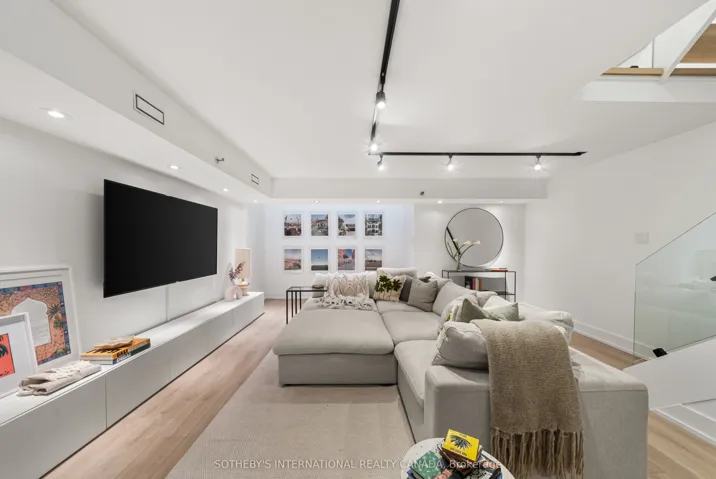 +"PublicRemarks": "Step off Pears Avenue and into a beautifully renovated townhouse that feels quietly tucked away from the city- yet just moments from the vibrant pulse of Yorkville. Offering over 1,700sf of sophisticated living space, this rare 3-level residence in the Annex welcomes you with a generous private terrace- an unexpected introduction that feels both open & secluded, perfect for quiet mornings, alfresco dining, & effortless entertaining. Inside, the home unfolds with intention & flow. The main level has been reimagined into a refined open-concept space where natural light pours through floor-to-ceiling windows, drawing your eye to the terrace & blurring the line between indoors & out. The living area feels expansive yet intimate, while the dining space is anchored by custom built-in shelving with integrated lighting. The kitchen is both striking & functional, featuring sleek cabinetry, clean lines, & a waterfall island. A thoughtful architectural detail sets this home apart: the main floor is open to below, allowing natural light to cascade into the lower level & transforming what is often an overlooked space into one of the home's most versatile & inviting areas. A spacious recreation room & flexible area offer potential for a home gym or additional bedroom, complemented by a 3-piece bath, laundry, & ample storage. The primary bedroom is expansive, overlooking the terrace below, with a large walk-in closet & a beautifully panelled feature wall that adds texture & quiet sophistication through classic picture-frame moulding. The 5-piece bathroom offers a spa-like retreat with refined finishes & dual rain shower heads. A bright second bedroom includes custom wall-to-wall closets. Enhancing the living experience, residents enjoy access to a serene outdoor pool, a recently renovated recreation room, separate women's & men's saunas, & an elegant party room. Complete with underground parking & a locker, this is a rare offering in one of Toronto's most coveted neighbourhoods."