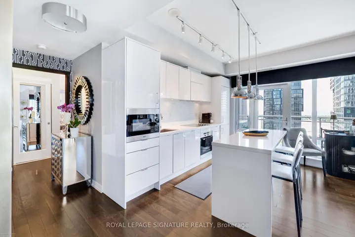 +"Inclusions": "While the gorgeous view is eye-catching, Unit 3711 has many unique features that go well beyond the norm, rivaling some of the most luxurious of Yorkville condos, thanks to nearly $70K of builder and after-market upgrades: 4 Miele kitchen appliances, high gloss white kitchen cabinetry with soft close drawers and doors, a custom pull-out pantry, Carrera marble kitchen backsplash and a breakfast island; custom roller shades, bedroom black-out drapery and oversized valences; solid core interior doors to enhance soundproofing between rooms; upgraded bathroom vanities and fixtures with pull-out spray heads; custom closets in the bedroom and hallway; mirrored sliding closet doors in bedroom; custom-built media wall unit and glassware cabinetry with back-lit lighting; designer lighting fixtures, all season deck flooring on the wraparound balcony and Samsung washer & dryer."
