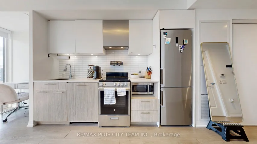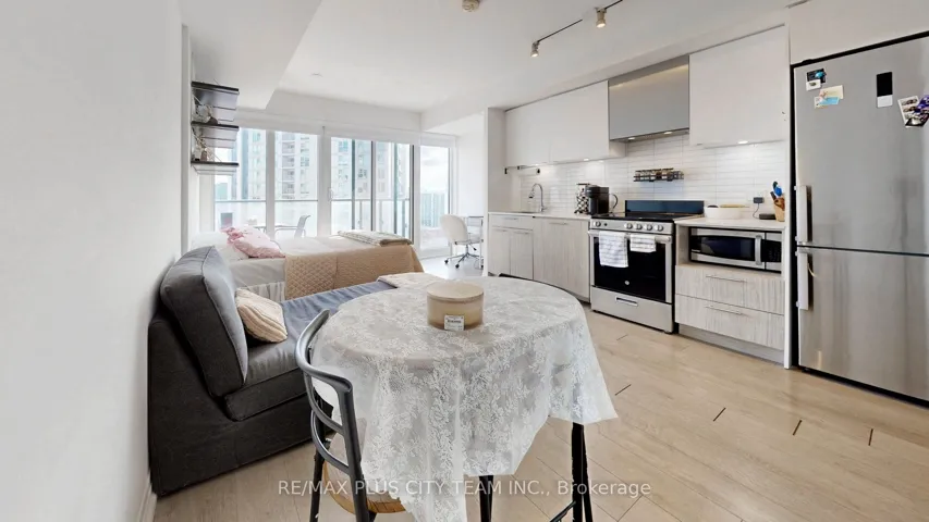 +"PublicRemarks": "Step into elevated downtown living with this stylish and efficiently designed studio suite, showcasing stunning east-facing city views. Floor-to-ceiling windows flood the space with natural light, creating a bright and airy atmosphere, while the 49 sq ft private balcony offers the perfect outdoor retreat to unwind above the city. The sleek, modern kitchen is thoughtfully appointed with built-in appliances, blending clean design with everyday functionality. Smart use of space ensures comfortable living without compromise. Enjoy the added convenience of a locker located on the same floor, perfect for easy-access storage. Ideally situated steps from TMU, the Eaton Centre, and seamless public transit, this residence places you in the heart of Toronto's most dynamic neighbourhood, offering unmatched access to shopping, dining, and entertainment."