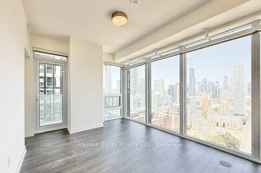 +"PublicRemarks": "ONE YEAR NEW 1+Den corner suite at The Saint by Minto with a spacious 9ft ceiling. Functional Layout, Easy to Place Furnitures. The den features a window and can serve as a second bedroom or home office. Thoughtfully designed with a stylish colour palette and an upgraded frameless shower. The living room boasts floor-to-ceiling windows, offering an unobstructed northeast city view. The modern kitchen is equipped with quartz countertops, built-in appliances, under-cabinet lighting, and a large island with extra storage and an electric outlet. The primary bedroom includes a generous closet with built-in shelving. Enjoy a spacious balcony accessible from the living room. Building Offers Top Amenities Including A State-of-the-art Fitness Centre, Spa Relaxation Treatment Room, Party/Meeting Room, Yoga Room, Salt Meditation Room, Rain Room & Lounge Area Overlooks Zen Garden, 24Hrs Concierge. Prime location with an excellent walk score just a 7-minute walk to Queen or Easton subway station, 8 minutes to St. Lawrence Market, and 10 minutes to TMU."