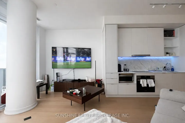 +"PublicRemarks": "Experience elevated waterfront living at Sugar Wharf Condos by Menkes, one of Toronto's most dynamic and fast-growing communities. Perfectly positioned just moments from Union Station, the Financial District, Sugar Beach, and everyday essentials like Loblaws and Farm Boy, this location offers a seamless blend of lifestyle and convenience.This bright one-bedroom suite features a thoughtfully designed open-concept layout, enhanced by wide-plank flooring and expansive floor-to-ceiling windows that fill the space with natural light. The living and dining area flows effortlessly onto a generous terrace, where unobstructed views of Lake Ontario create a truly impressive backdrop.The kitchen presents a clean, modern aesthetic with integrated appliances and a sleek backsplash, while the welcoming foyer includes a practical double closet for added storage. The bedroom is well-proportioned with ample closet space, and the spa-inspired bathroom delivers a calm, refined atmosphere.Residents enjoy access to an exceptional range of amenities, including a 24-hour concierge, fitness centre, yoga studios, basketball court, co-working spaces, games lounge, music and art rooms, as well as private theatres."
