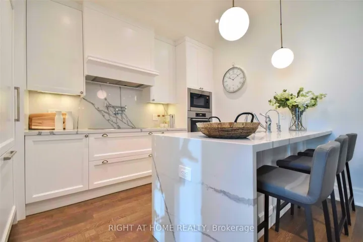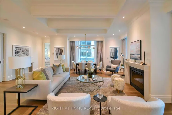 +"PublicRemarks": "Welcome to the iconic St. Regis Residences, offering refined urban living in the heart of downtown Toronto - steps to the Financial District, PATH, and the city's finest dining and entertainment. Perched on the 35th floor, this expansive 1,563 sq ft fully furnished corner suite showcases breathtaking northeast views of the city and lake. Thoughtfully designed for both comfort and sophistication, the residence features a seamless open-concept living and dining area with a fireplace and coffered ceilings, alongside a modern chef's kitchen with marble countertops, waterfall island, and premium Miele appliances. The spacious primary bedroom, with windows on two exposures, offers an oversized walk-in closet, while a separate library provides the flexibility of a private home office or second bedroom. Two elegantly appointed bathrooms complete the layout. Soaring 10.5 ft coffered ceilings, bespoke millwork, solid wood flooring, and premium finishes elevate the space throughout. Enjoy effortless turnkey living with access to world-class 5-star hotel amenities and services, including valet parking, dining at Louix Louis, and the St. Regis Spa-ideal for executives seeking a luxurious and seamless lifestyle."