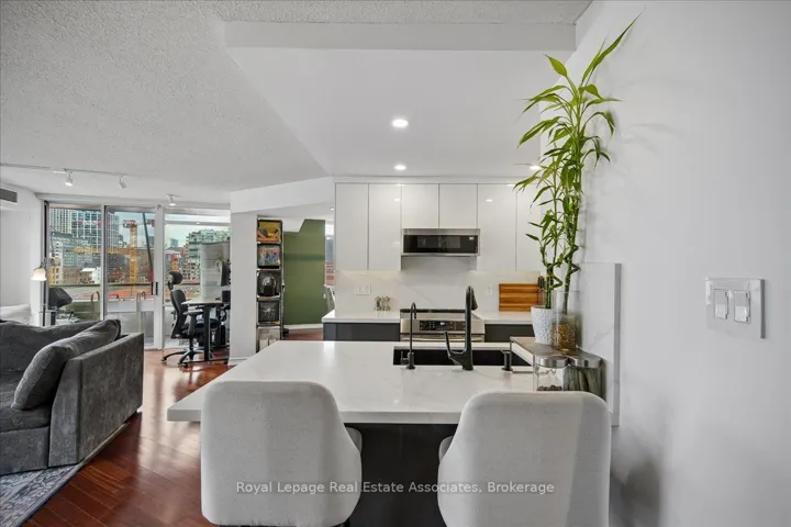 +"PublicRemarks": "Welcome to the Distillery District, where life is always on tap and culture is poured into every street. This is small-batch living with big city energy - curated, creative, and impossible to replicate. Steps from enjoying curated menus or shopping at the St Lawrence Market. Originally a three-bedroom, this residence has been strategically reimagined into a sprawling two-bedroom layout with dining room. Think openness, flow, and flexibility - with the option to convert back as your lifestyle evolves. At the centre, a kitchen that doesn't just look good - it performs. Fully renovated in 2020 with quartz countertops, matching backsplash, stainless steel appliances, and a statement island built for everything from morning espresso to late-night wine. It opens seamlessly into a true dining space - because here, every night feels like a tasting menu - and a living area anchored by a fireplace, custom built-ins, and natural light that pours in. This is boutique living at its finest - where every corner is curated and every detail matters. Designed for those who appreciate character over cookie-cutter, and a lifestyle that's meant to be experienced, not just lived in. Step outside and you're surrounded by it all - galleries, cafés, craft breweries, fine dining, and waterfront trails. A neighbourhood that serves. A place where you can raise a glass, grab a table, and discover something new every single day. Whether you're downsizing without compromise or stepping into your next chapter with intention - this is where it happens."
