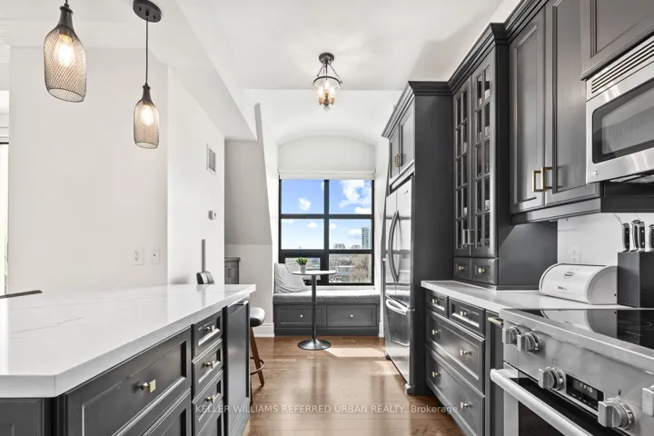 +"PublicRemarks": "This exquisitely renovated, Parisian-inspired designer residence offers over 2,000 square feet of refined living in one of the building's most coveted layouts. Sun-drenched and beautifully proportioned, the suite is framed by unobstructed views from every exposure, creating a bright, airy ambiance throughout. Thoughtfully designed custom built-ins seamlessly integrate form and function, elevating the space with a tailored, luxury finish. Complete with two-car parking, including a dedicated EV charger, this exceptional offering delivers both sophistication and everyday convenience in equal measure."