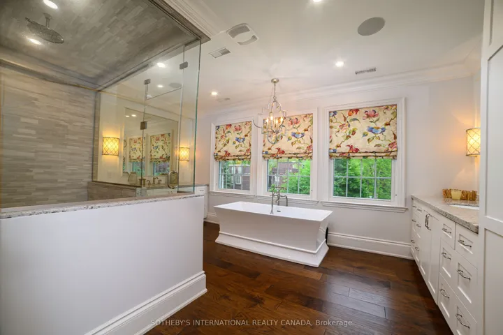 +"PublicRemarks": "Nestled in the heart of coveted Rosedale, this beautifully renovated residence blends timeless elegance with modern luxury. Thoughtfully designed with exceptional attention to detail, this home features coffered ceilings, rich hardwood flooring, and a chefs kitchen that will impress the most discerning culinary enthusiast. Offering four spacious above-grade bedrooms and five luxurious bathrooms, the home includes a private nanny or in-law suite and a dedicated home office perfect for todays lifestyle. The large, welcoming foyer opens into a custom mudroom, while convenient laundry rooms are located both upstairs and on the lower level. The spectacular primary bedroom suite is a true retreat, featuring a separate sitting room with a coffee and drink bar, double sided fireplace, a generous walk-in closet, and a lavish 6-piece ensuite complete with double sinks, an oversized steam shower, and a freestanding soaker bathtub.Step outside into your private backyard oasis an entertainers dream. Enjoy a built-in barbecue and drink fridge, a stunning saltwater pool with waterfall, a heated cabana with fireplace, and a stone dining patio, all surrounded by lush landscaping and a fully fenced dog-friendly yard. A rare double garage accommodates up to six vehicles including three cars in the newly constructed garage with built-ins and a convenient car lift, offering exceptional storage and parking solutions. This extraordinary home delivers luxury, comfort, and functionality in one of Toronto's most prestigious neighbourhoods. This is Rosedale living at its finest timeless, elegant, and ready for its next chapter."