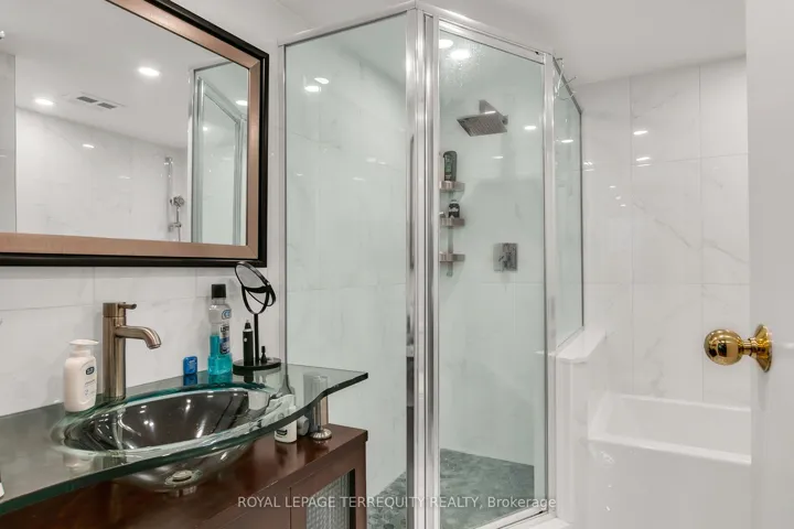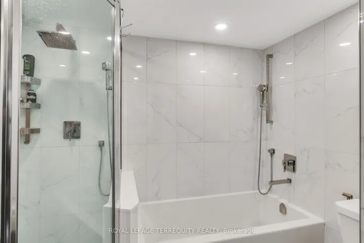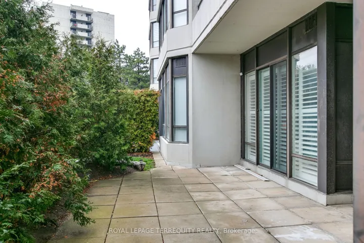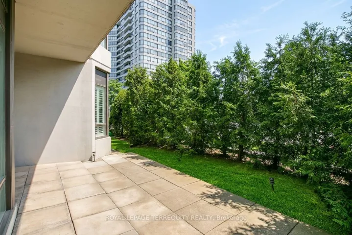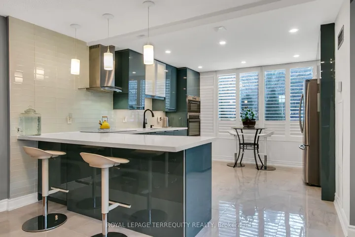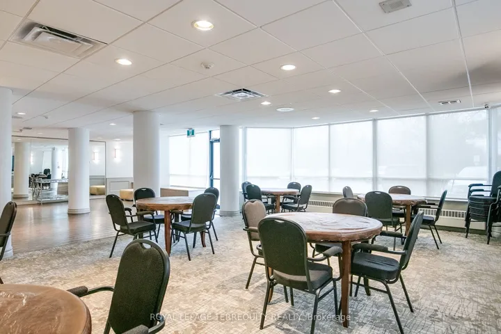 +"PublicRemarks": "Outstanding and rarely offered main floor convenience, tastefully updated condo featuring renovated modern open concept kitchen with peninsula island, cooktop, integrated dishwasher, wine fridge/beverage cooler, and stainless steel appliances. Two newly renovated bathrooms. South facing unit offering an abundance of year-round sunlight. Ideal for downsizers or buyers seeking spacious living without compromising comfort or convenience. Bright, well-designed layout with sun-filled living/dining area with large windows, plus bright den surrounded by windows, ideal for office or flex space. Generous primary bedroom with floor-to-ceiling windows, updated ensuite, and his and hers closets. Second bedroom with built-in cabinets and walkout to terrace. Includes two parking spaces and two lockers!! Enjoy the convenience of main floor living with no wait for elevators and direct walkout to your patio for that true home garden-like feel. Amazing amenities include outdoor pool, party room, squash/racquetball/tennis courts, sauna, and more. Beautifully maintained Primrose grounds. Ideally located at Bathurst and Steeles, walking distance to shops, transit, places of worship, 3 plazas, parks, and more, with one bus to Finch Subway or Steeles West Subway."