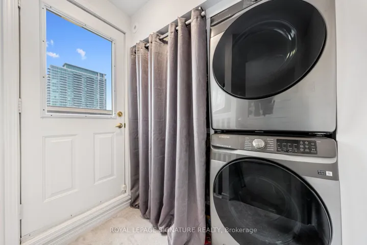 +"PublicRemarks": "**Say Hello to the Liberty Village Townhomes-where urban living meets refined comfort.** This sophisticated townhouse offers two spacious bedrooms and two beautifully appointed bathrooms, all thoughtfully designed for modern living. The main floor features a bright, open-concept layout with pot lights, hardwood floors, and a built-in coat closet, blending style and functionality seamlessly. Smooth ceilings (no stucco) and custom wooden doors throughout add warmth and an elevated, designer touch. At the heart of the home is the beautifully renovated kitchen, enhanced in 2025 with a stunning quartz countertop featuring a waterfall edge and matching backsplash, creating a sleek, contemporary focal point. High-end, newer stainless steel appliances complete the space. Upstairs, both generously sized bedrooms feature custom built-in closets designed to maximize storage and organization. The second-floor bathroom, fully renovated less than three months ago, is a true showpiece. Brand-new broadloom adds warmth and comfort, while the home's overall efficiency makes it economical to maintain. A true highlight is the spectacular 280 sq. ft. rooftop terrace, offering breathtaking 360-degree panoramic views of the city skyline. Complete with patio furniture-generously included by the current owner and a gas line for a BBQ-this exceptional outdoor space is perfect for entertaining or unwinding. Meticulously cared for, with outstanding maintenance and numerous custom upgrades, this home truly stands apart. Enjoy the rare feeling of suburban tranquillity while being in the heart of downtown, steps from everything Liberty Village has to offer."