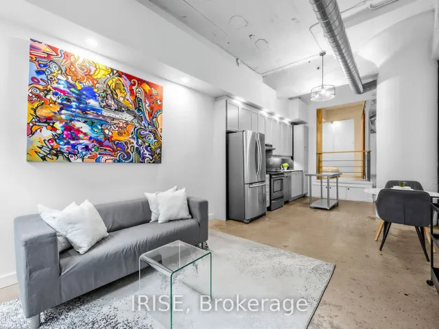 +"PublicRemarks": "Experience the iconic Merchandise Lofts, featuring soaring 12-ft ceilings, polished concrete floors, exposed ductwork, and heritage windows. The open-concept layout boasts a generous 750 sq ft of living space and seamlessly connects the kitchen, living, and dining areas-perfect for daily living or creating a stylish work-from-home space. The upgraded kitchen features sleek cabinetry, New stainless steel appliances, and plenty of storage. The elevated bedroom includes custom built-in drawers beneath the platform, maximizing space while keeping the loft organized.Located just steps from Toronto's Financial District, TMU, and the University of Toronto, residents enjoy premier amenities including 24-hour concierge,indoor pool, gym, sauna, yoga and games rooms, basketball court, rooftop terrace with BBQs, and a dog walk area. A rare opportunity to live in a true industrial-design loft that combines historic character, modern style, and downtown convenience."