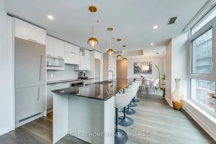 +"PublicRemarks": "Welcome to Suite 807 at 30 Nelson Street, a rare and beautifully scaled corner residence offering sophisticated downtown living, sun-filled southwest exposure, and an enviable address in the heart of Toronto's Entertainment District. Offering approximately 1,357 square feet of refined interior space, this 2-bedroom, 2-bathroom suite combines scale, natural light, and sophisticated city living. Thoughtfully designed with an open-concept layout, the home features a large chef-inspired kitchen anchored by an impressive island ideal for casual dining, elegant entertaining, and everyday living. With southwest exposure, floor-to-ceiling light, and two private balconies, the suite captures the energy of the city while offering a bright and elevated retreat above it all. A coveted corner-unit layout enhances both privacy and flow, while parking and locker add everyday convenience. Set within Studio 2, a sought-after luxury condominium residence, this address places you moments from TIFF Lightbox, Roy Thomson Hall, the CN Tower, Ripley's Aquarium, the AGO, fine dining, premier shopping, and the Financial District. Residents also benefit from exceptional connectivity to the TTC, Union Station, GO Transit, and UP Express, with seamless access to Toronto's major highways. Building amenities include concierge service, a rooftop terrace with BBQs, fitness facilities, sauna, guest suites, entertaining spaces, and more, creating a complete downtown lifestyle experience. A rare opportunity to lease or own a generous, design-forward residence in one of Toronto's most vibrant and internationally recognized neighbourhoods."