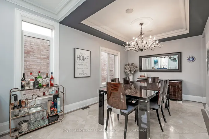 +"PublicRemarks": "Stunning approximately 3,000 sq ft Executive Home featuring 5 bedrooms and 5 bathrooms, ideally located in sought-after Churchill Meadows. This impressive residence offers a spacious open-concept layout with 9-foot ceilings throughout the main level.The main floor showcases a private office, convenient laundry room, and a generous family room complete with a cozy gas fireplace. The chef-inspired custom eat-in kitchen is a true highlight, equipped with high-end appliances including a Wolf stove and Sub-Zero fridge, ample cabinetry, granite counters, a centre island, pantry, and a walk-out to the beautifully landscaped backyard. Elegant heated limestone flooring on the main level, complemented by hardwood flooring in the family room and throughout the upper level, adding warmth and sophistication.Upstairs, you'll find five well-appointed, spacious bedrooms all with custom closet organizers and 3 full bathrooms. The primary suite offers a luxurious retreat, featuring a spa-like ensuite with a soaker tub, his and her sinks and a large walk-in closet.The fully finished basement is designed for entertaining, boasting a large recreation room, wet bar, oversized windows, art niches, and a dedicated exercise area. A stunning spa-inspired California shower completes this exceptional lower level.Outside, enjoy a professionally landscaped yard + inground sprinkler system-perfect for relaxing or entertaining. This home is loaded with premium upgrades, including pot lights, crown moulding, smooth ceilings throughout, custom lighting, oversized custom doors, California shutters, built-in speakers on main floor and so much more.This is an Absolute Showstopper."