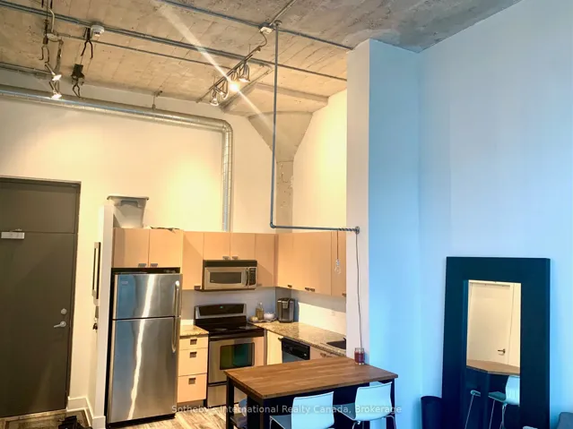 +"PublicRemarks": "Iconic loft living at the historic Tip Top Lofts, one of Toronto's most sought-after Art Deco conversions on the waterfront. This bright and spacious 1-bedroom suite offers almost 600 sq. ft. of thoughtfully designed living space, featuring soaring concrete ceilings, large windows, and an open-concept layout filled with natural light.The modern kitchen is equipped with stainless steel appliances and a functional layout ideal for both everyday living and entertaining. The living and dining areas provide a comfortable, stylish space, while the well-sized bedroom offers ample storage.Enjoy the character and charm of authentic loft living paired with modern conveniences, including ensuite laundry and contemporary finishes throughout.Unbeatable location just steps to the waterfront, parks, trails, transit, and downtown core, as well as Billy Bishop Airport, perfect for professionals and frequent travelers. Minutes to Loblaws, Exhibition Place, and major highways.A rare opportunity to live in a landmark building in one of Toronto's most vibrant communities."