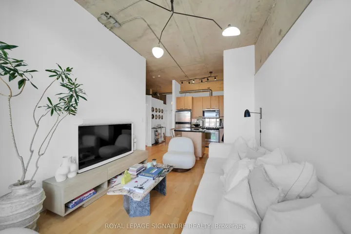+"PublicRemarks": "Welcome to the iconic Chocolate Company Lofts in the heart of Queen West. This stylish 1+1bedroom suite (den easily used as a second bedroom or home office) offers just under 700 sq ft of functional living space, complete with parking. Featuring soaring concrete ceilings, warm wood floors, and an open-concept layout, the space blends authentic loft character with modern comfort. The kitchen with breakfast bar over looks the living area, while oversized windows and a Juliette balcony bring in natural light and city views. Live directly across from Trinity Bellwoods Park and steps to Queen West's best cafés, restaurants, boutiques, and transit. A rare opportunity to lease in one of Toronto's most sought-after loft buildings - where lifestyle and location meet."
