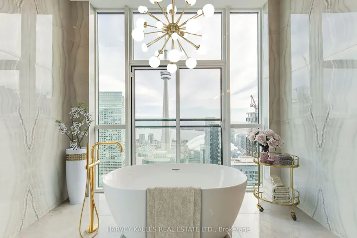 +"PublicRemarks": "Another spectacular penthouse offering from Pinnacle International, featuring a rare and remarkable first: a fully self-contained staff quarters. This separate one-bedroom suite, with its own entrance and deed, provides exceptional flexibility for live-in staff, extended family, returning children, or private caregiver accommodations. From the moment you enter, you are greeted by a breathtaking panoramic southwest view-truly one of the most extraordinary vistas in the city. The skyline unfolds before you, showcasing the CN Tower, Lake Ontario, and the Toronto Islands, all culminating in unforgettable sunset views that transform everyday living into something extraordinary. The suite is finished with stunning herringbone hardwood floors throughout, complemented by a chef-inspired kitchen featuring Thermador stainless steel appliances, a spacious centre island, and extensive custom cabinetry. The primary bedroom is a true showpiece, highlighted by a spectacular six-piece ensuite. Floor-to-ceiling windows frame sweeping southeast views of downtown Toronto, beautifully accented by dramatic butterfly-matched marble, creating a spa-like experience unlike any other. And just when you think it couldn't get better, step upstairs to the impressive 1,424 sq. ft. pillared terrace. With unending south and west views capturing the city skyline, the lake, and endless sunsets, this outdoor space is truly exceptional. Complete with gas, water, and hydro, it is perfectly designed for entertaining or private relaxation. This is penthouse living at its finest-luxurious, distinctive, and designed for those who expect nothing but the best. * Photos are virtually staged * ."