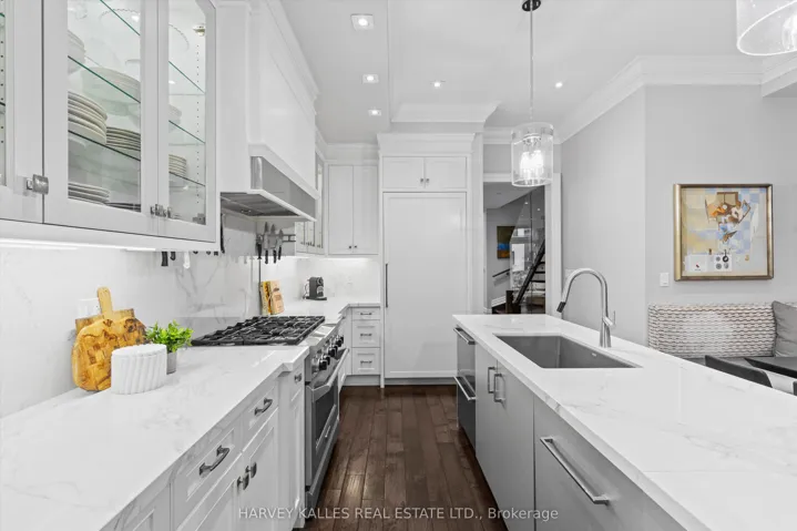 +"PublicRemarks": "Welcome to 582 Woburn Avenue: An exceptional 5+1-bed, 5-bath detached 3-storey home situated on a quiet, tree-lined street in the heart of Ledbury Park. Spanning 2,492 sq. ft. above grade plus a fully finished 899 sq. ft. basement, this thoughtfully designed residence delivers the space, style, and functionality today's discerning buyer is looking for. The main level impresses from the moment you enter, with gleaming hardwood floors, soaring tray ceilings, and a sun-filled living room framed by a large bay window. The heart of the home is an extraordinary chef's kitchen, renovated just three years ago, featuring Sub-Zero, Perlick, Miele, and Kitchen Aid appliances, quartz countertops, custom cabinetry, a large centre island, and built-in banquet seating. To top it off, the kitchen comes equipped with three ovens and a large banquet dining area, making hosting a dream. From the kitchen, walk out to a private elevated deck, stone patio, and two-car laneway parking. Upstairs, the serene primary suite offers a walk-in closet, custom built-ins, and a stunning 5-piece marble ensuite with his-and-hers sinks. Four additional bedrooms span the upper levels, along with a beautifully appointed 4-piece bath and a serene third-floor retreat complete with its own 3-piece bath, skylight, and private terrace. The finished basement adds a spacious recreation room with a gas fireplace, a walk-up to the back patio, a laundry room, and a sixth bedroom with a full bathroom. Perfect for a live-in nanny, extended family or guests. Located in the catchment for Ledbury Park Elementary and Middle School (JK-8) and John Polanyi Collegiate Institute (9-12) are among the most sought-after public schools in the city. Steps to Lawrence Subway Station, Pusateri's, top-rated restaurants, and parks. A rare opportunity in one of Toronto's most beloved neighbourhoods."