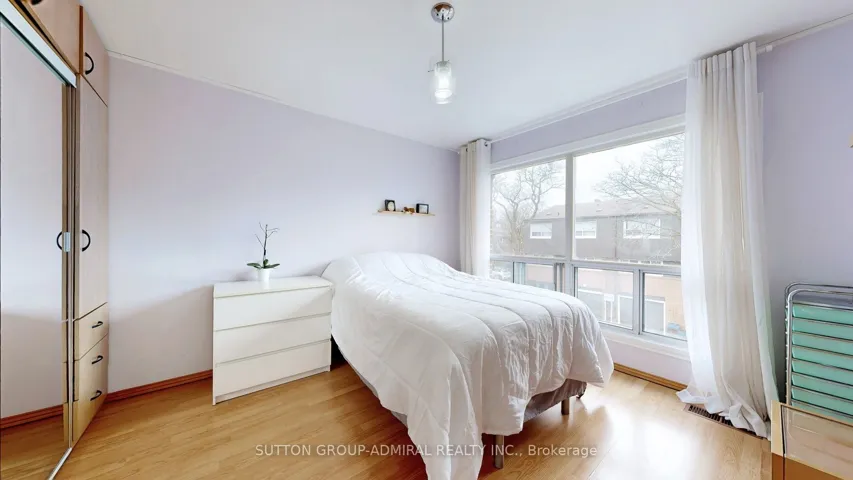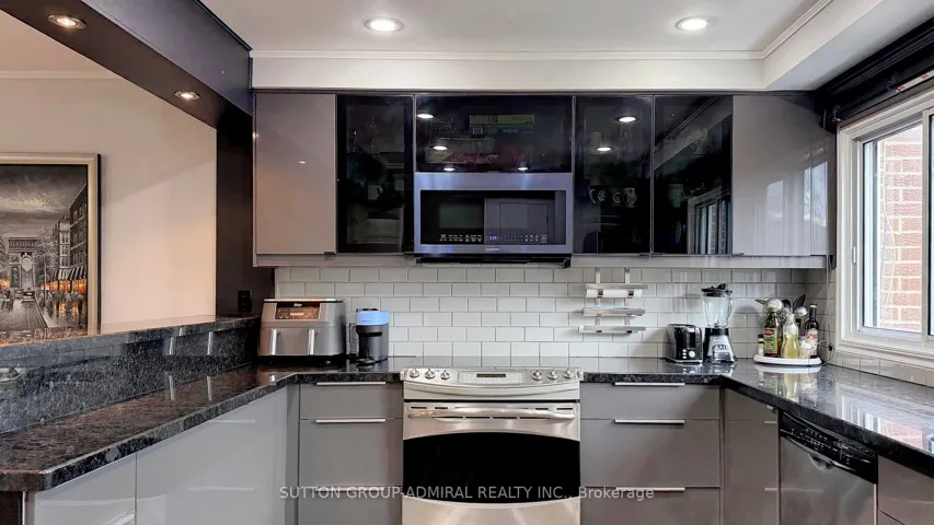 +"PublicRemarks": "Renovated townhouse in a prime North York location, steps to all amenities, with exceptionally low condo fees of just $0.37/sq. ft. Bright and spacious open-concept layout offers nearly 1,800 sq. ft. of total living space, featuring large principal rooms, generous bedrooms, and a modern kitchen with ample counter space. The living room impresses with soaring 11 ft ceilings, while the finished basement includes a cozy wood-burning fireplace, abundant storage, and additional living space. Upgrades throughout include custom kitchen cabinetry with glass fronts, built-in bedroom closets, double French door entry with ornamental glass inserts, smooth ceilings, laminate flooring throughout (no carpet), designer vanities, a spa-inspired shower with body jets, black iron pickets, glass railing overlooking the dining area, a stone feature wall, accent-lit niches, pot lights, and closet organizers. Enjoy a private backyard with a full-length raised planter bed. Well-managed complex with maintenance fees significantly lower than comparable condo townhomes. Steps to transit, schools, G. Ross Lord Park, trails, shopping, dining, synagogues, and much more. No sidewalk. Come and check out this beautiful home today!"