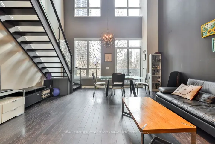 +"PublicRemarks": "A sophisticated loft-style residence in the prestigious 500 Condos & Lofts, tailored for modern urban professionals. Flooded with natural light from expansive floor-to-ceiling windows, this impressive suite features soaring 17' ceilings and a thoughtfully designed open-concept layout, ideal for both productive workdays and refined entertaining. The upper-level primary retreat offers a dedicated den space, perfectly suited for a private home office or quiet workspace, complemented by a spacious walk-in closet and convenient in-suite laundry. The 5-PC ensuite provides a spa-inspired setting to unwind after a busy day. Enjoy a private terrace overlooking the greenery of Wellesley-Magill Park, offering a rare balance of city living and natural serenity. Ideally positioned on the same level as premium amenities for effortless access, while maintaining privacy with a separate corridor and soundproof entry, perfect for those who value both convenience and discretion. This highly sought-after executive residence offers an exceptional, resort-inspired lifestyle with an impressive array of amenities designed for modern professionals. Enjoy a state-of-the-art fitness centre, multiple stylish lounges, dedicated workspaces, boardrooms, and a fully equipped games room. Entertain effortlessly in expansive party rooms with kitchens and elegant lounge areas, or unwind on the beautifully designed outdoor terraces, including a spacious 5th-floor terrace complete with BBQs and seating. Additional conveniences include guest suites, study rooms, and a main-floor party room with walkout to a terrace. Complete with one parking space and a storage locker, the building also offers ample visitor parking and two shared EV charging stations. A perfect blend of comfort, convenience, and elevated urban living."