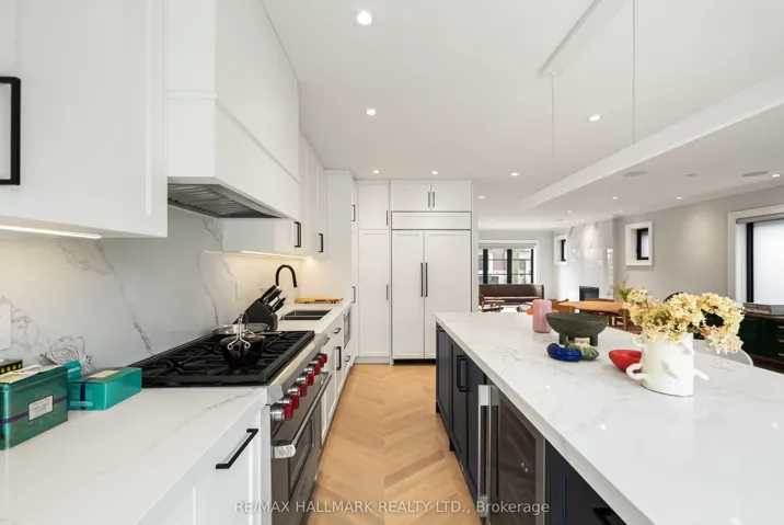 +"PublicRemarks": "Newly completed, rarely offered 3-storey detached home in the heart of the coveted Bayview & Eglinton neighbourhood, just steps to Yonge Street's vibrant shops, restaurants, and transit. This stunning residence showcases a bright, open-concept layout with premium transitional finishes throughout, including elegant white oak floors and stairs, sleek glass railings, skylights, and an abundance of natural light. The gourmet eat-in kitchen is outfitted with top-of-the-line Niele appliances (fridge, stove, dishwasher) and seamlessly connects to spacious living and dining areas-perfect for both everyday living and entertaining-enhanced by a stylish gas fireplace. Interlocking extends throughout the exterior, adding both curb appeal and functionality. Featuring five generously sized bedrooms across the upper levels, this home offers exceptional space for growing families. High-quality craftsmanship is evident throughout with solid wood interior doors and trims, aluminum windows and doors, and thoughtful upgrades like heated bathroom floors and electrical window blinds. The fully finished basement includes a complete kitchen, presenting an excellent opportunity for rental income or multi-generational living. Smart home enthusiasts will appreciate the integrated Control4 system managing lighting, climate, audio, and security, along with built-in speakers, security cameras, and an alarm system for added convenience and peace of mind. Situated on a quiet, low-traffic street with two-car driveway parking, this home combines luxury, functionality, and an unbeatable location in one of Toronto's most desirable communities."
