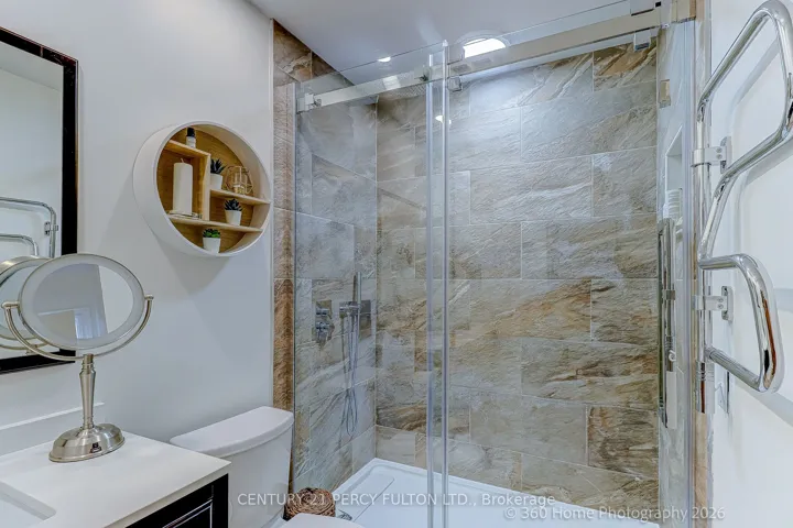+"PublicRemarks": "Welcome to the highly sought-after Leaside Park community, a well-managed building with recently upgraded common areas, including a fully equipped fitness centre, party/meeting room, bike storage, library/lounge, and car wash station. This upper-floor suite offers 767 sq ft of thoughtfully designed living space with soaring 9-ft ceilings and a sophisticated open-concept layout. Floor-to-ceiling windows flood the unit with natural light and lead to a private terrace. The modern kitchen is beautifully appointed with quartz countertops, a breakfast bar, large sink, tiled backsplash, pot lights, and elegant wood and glass cabinetry with soft-close doors. Upgraded luxury vinyl plank flooring runs throughout the unit. The oversized bedroom provides a tranquil retreat and features room-darkening motorized roller shades and a walk-in closet. The spa-inspired bathroom is designed for comfort with a walk-in rainfall shower, heated floors, and a heated towel bar. Additional features include in-suite laundry, linen light-filtering motorized blinds in the living area, a premium parking space, and a conveniently located same-floor locker. Ideally located with TTC at your doorstep and the future Ontario Line nearby, this address offers easy access to both the Leaside and Danforth neighbourhoods-known for their excellent shopping, restaurants, cafés, parks, ravines, and trails. An exceptional opportunity for refined urban living in one of Toronto's most desirable communities."