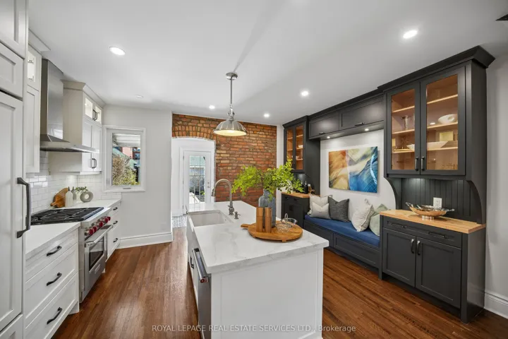 +"PublicRemarks": "Welcome to 577 Ossington Ave! A masterfully updated semi in the highly coveted Palmerston-Little Italy district. This stunning home perfectly balances preserved historic charm with modern luxury. The main floor boasts revitalized era-strip hardwood, ornamental plaster ceiling inlays, and a striking exposed brick feature wall. The custom chef's kitchen is an entertainer's dream, featuring a premium Wolf 4-burner gas range and a Sub-Zero built-in fridge. Spacious principal rooms are beautifully accented by modern light fixtures and spa-like baths. The fully finished lower level offers a separate entrance, wet bar, and full spa-inspired bath-ideal for an income suite, nanny quarters, or home gym. Step out to a private, fully fenced urban backyard oasis perfect for al-fresco dining. *** A true Toronto rarity: a block-constructed double car garage with lane access and incredible potential to build a massive 1,312 sq. ft. Laneway Suite! Unbeatable location steps to top-rated schools, parks, the Bloor subway line, and the vibrant restaurants of College St. This is not just a home; it's a lifestyle."