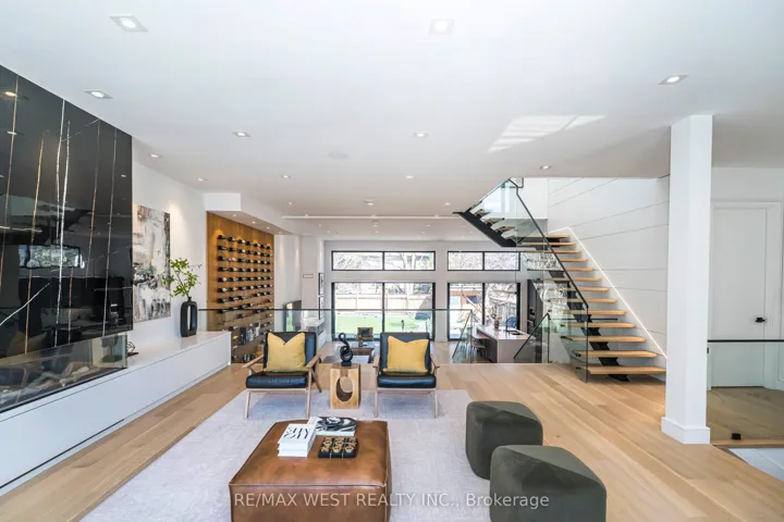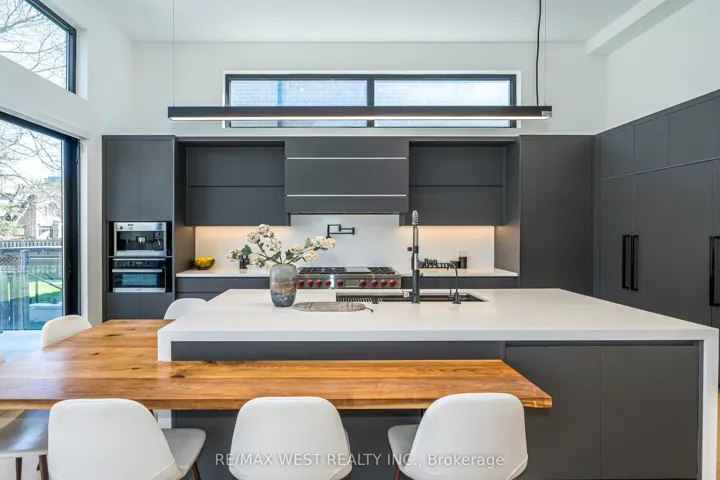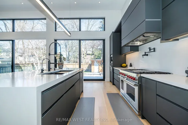 +"PublicRemarks": "Excellent Location! Spectacular modern build in 2023 situated in a highly desired neighbourhood; Over 4,200 sq ft of functional and luxurious living space. Open concept main floor with sprawling 14 ft ceilings, floor to ceiling windows, ceiling mounted speakers, spacious living/family area with fireplace and built-ins. Gourmet kitchen with high end appliances, and walk out to private backyard. Floating staircase leading to the second floor featuring a generous sized primary bedroom with walk-in closet and a luxurious ensuite, steam shower and soaker tub and three additional spacious bedrooms with ensuites. Lower level features radiant heated floors, large rec room and wet bar, and walk up to backyard. Professionally landscaped front and backyards with irrigation system and backyard shed. 38 Gwendolen is ideally located to all amenities, transit, Hwys, schools, shops and much more. No details spared. A must see!"