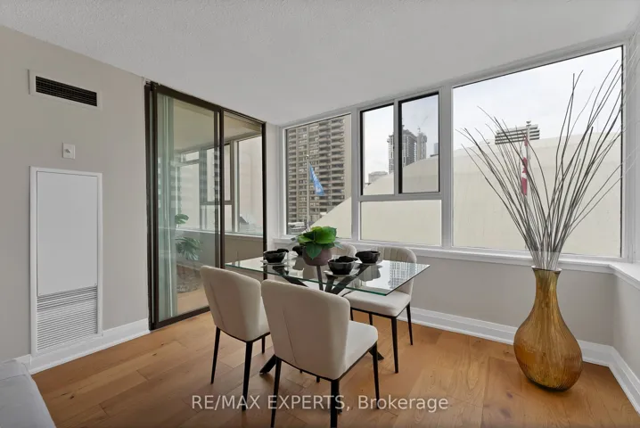 +"PublicRemarks": "Welcome to Lexington Condominiums! Rarely offered ~1,250 SQ. FT. CORNER/END UNIT in the heart of Yonge & Carlton-an exceptional size that's increasingly hard to find in today's downtown market. This 2-BEDROOM + SOLARIUM SUITE FEATURES A DESIRABLE SPLIT-BEDROOM LAYOUT, offering both privacy and functionality. Beautifully renovated with NEW HARDWOOD FLOORING (2026) and fresh paint, the unit boasts a spacious open-concept living/dining area and a functional eat-in kitchen. Generously sized bedrooms include a primary retreat with a 4-piece ensuite and double closets. The bright solarium, surrounded by windows, provides flexible space for a home office, nursery, or additional lounge area. Complete with a large foyer closet and separate laundry room with added storage.Unbeatable location-steps to College Station, street cars, shops, restaurants, and Loblaws at Maple Leaf Gardens. Minutes to Eaton Centre, TMU, U of T, hospitals, and more. Full-service building with premium amenities: 24/7 concierge, indoor pool, gym, running track, squash courts, party room, library, sundeck with BBQs, and visitor parking. ALL UTILITIES INCLUDED in maintenance fees. Well-managed building with a strong sense of community-ideal for buyers seeking space, layout, and convenience in downtown Toronto."
