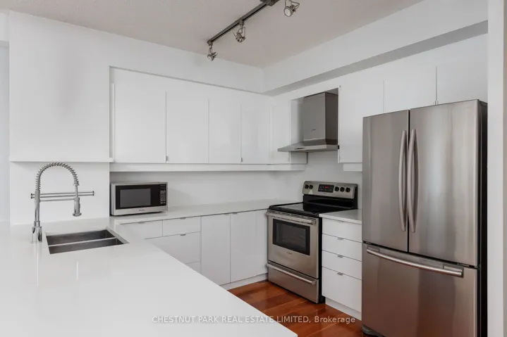 +"PublicRemarks": "Welcome home to this fully renovated 2+1 bedroom, 2 bathroom condo situated in the heart of Toronto's Harbourfront neighbourhood. Featuring over 1300 square feet, this unit exceeds expectations in every way with an exceptionally functional floor plan and renovations throughout, including a fully upgraded chef's kitchen, new flooring and new appliances. Enter into a spacious foyer with double closet and easy access to a well-appointed 3-piece bathroom with ensuite laundry. The living/dining room is open concept with fabulous flow to the kitchen that features a built-in peninsula with seating and includes and a juliette balcony with south-facing lake views. The king-sized primary bedroom offers a spacious retreat complete with a 4-piece ensuite bathroom and walk-in closet while the second bedroom is also perfectly well appointed offering wonderful balance and tranquility. The den, currently used as an office, offers additional flexibility as a work from home space. 1 parking space and 1 locker are included. Enjoy all the best that this incredible neighbourhood has to offer with every amenity imaginable at your door including easy access to transit, restaurants, entertainment and shopping not to mention the incredible outdoor living and recreational opportunities that exist along the waterfront including the Martin Goodman Trail, Toronto Music Garden and more! Unit is also available partially furnished."
