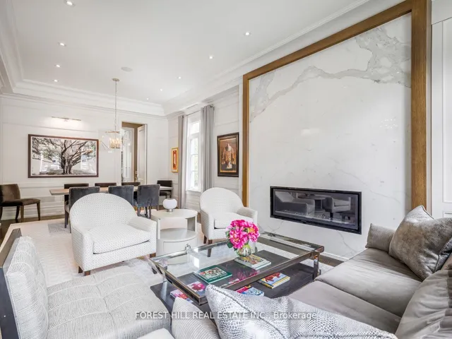 +"PublicRemarks": "Welcome to Toronto's most prestigious neighbourhoods, where timeless elegance and modern sophistication come together in this architectural masterpiece by Lorne Rose Architect. Offering approximately 6,150 sq.ft. of total luxury living space, this residence has been thoughtfully designed to combine functionality, comfort, and style. Featuring 4+1 bedrooms, the home provides ample space for family living and refined entertaining. The primary bedroom retreat is a true sanctuary, showcasing custom wood paneling, an expansive dressing room, and a luxurious 5-piece spa-inspired ensuite. Indulge in marble slab finishes, heated floors, a deep soaker tub, and a walk-in glass shower designed for ultimate relaxation. Entertain and gather in the large principal rooms, each crafted with meticulous attention to detail and superior finishes. The open-concept family room and kitchen seamlessly connect to the living and dining rooms, creating a warm yet sophisticated flow ideal for both intimate evenings and large gatherings. The custom chefs kitchen is a showstopper, featuring upgraded cabinetry, stunning herringbone hardwood flooring, and an oversized quartz centre island with integrated stainless steel sink, Perrin & Rowe faucet, breakfast bar, and additional storage. Modern glass shelving framed with stainless steel accents further elevate the contemporary design. The fully finished lower level is designed for ultimate comfort and recreation, complete with heated floors, built-in storage, gym, sauna, nanny's quarters, and a spectacular recreation room anchored by a designer bar. Additional conveniences include two laundry rooms, heated marble flooring in the foyer and basement, and state-of-the-art finishes throughout. Perfectly located, this home is within walking distance to Upper Canada College, Bishop Strachan School, Forest Hill Public School, Forest Hill Collegiate, as well as boutique shops, fine dining, transit, and everything this coveted community has to offer."