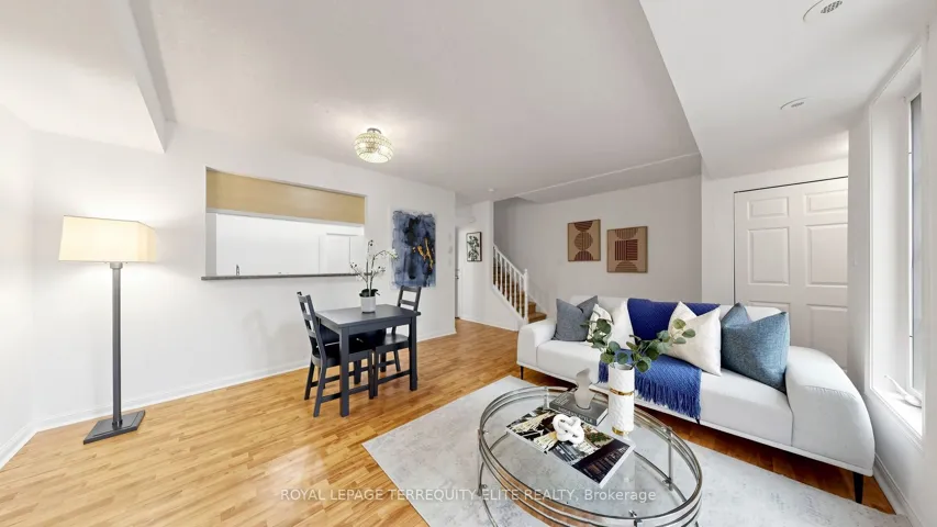 +"PublicRemarks": "South facing One Bedroom Townhome With A Private Entrance in the desired Neighbourhood. Excellent Location! Situated Conveniently In The Heart Of Thornhill. Open Concept Kitchen, Big Storage Space Under Stairs. Large,Private Courtyard Perfect For Relaxing & Barbequing. Steps To the Community Centre, Shopping Mall including Food Basic, Shoppers Drug Mart,Library, Walk-In Clinic, Gym, Pool And Earlyon Child & Family Centre. Award Winning School Zone. Walk To TTC And Viva Transit,Minutes To Hwy 407, 404, 401 & More."
